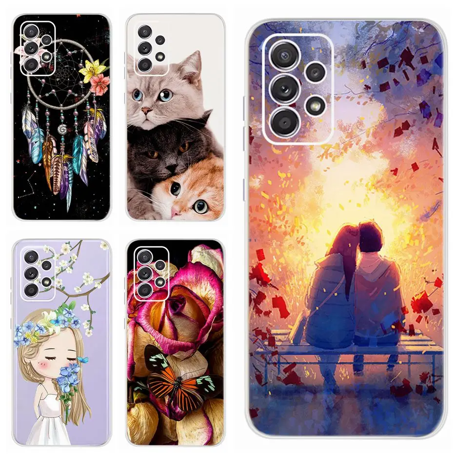 Чехол для Samsung Galaxy A52, задняя крышка из мягкого силикона и ТПУ для Samsung A52 A 52, телефонные чехлы для телефона, бампер, сумки с милым котом