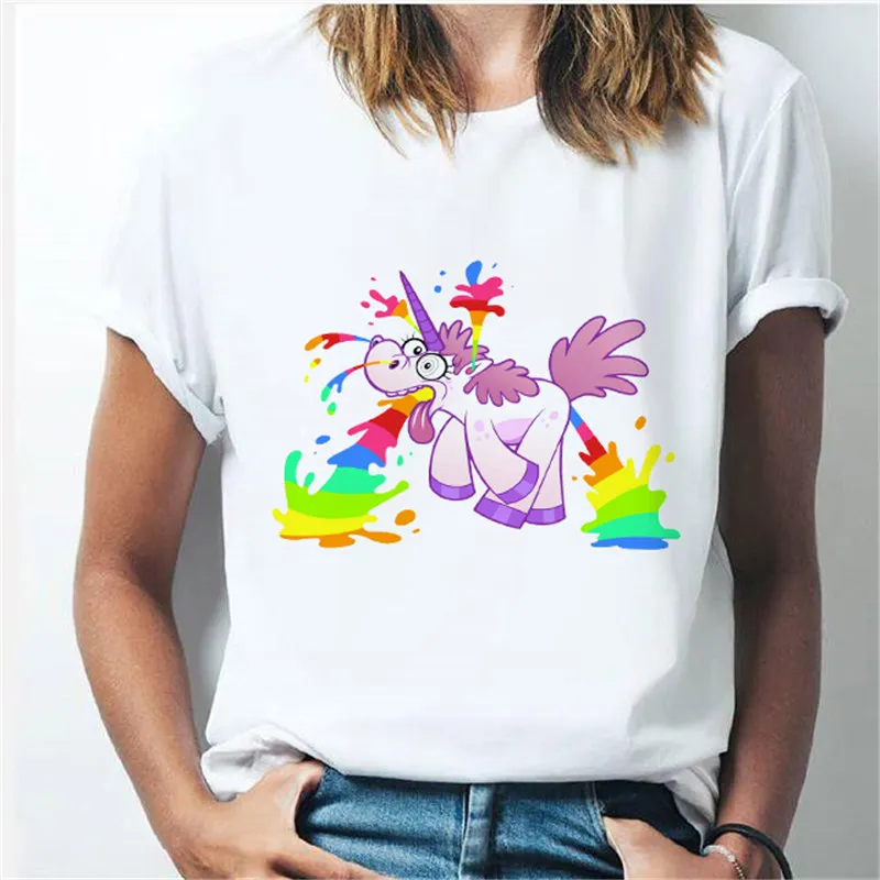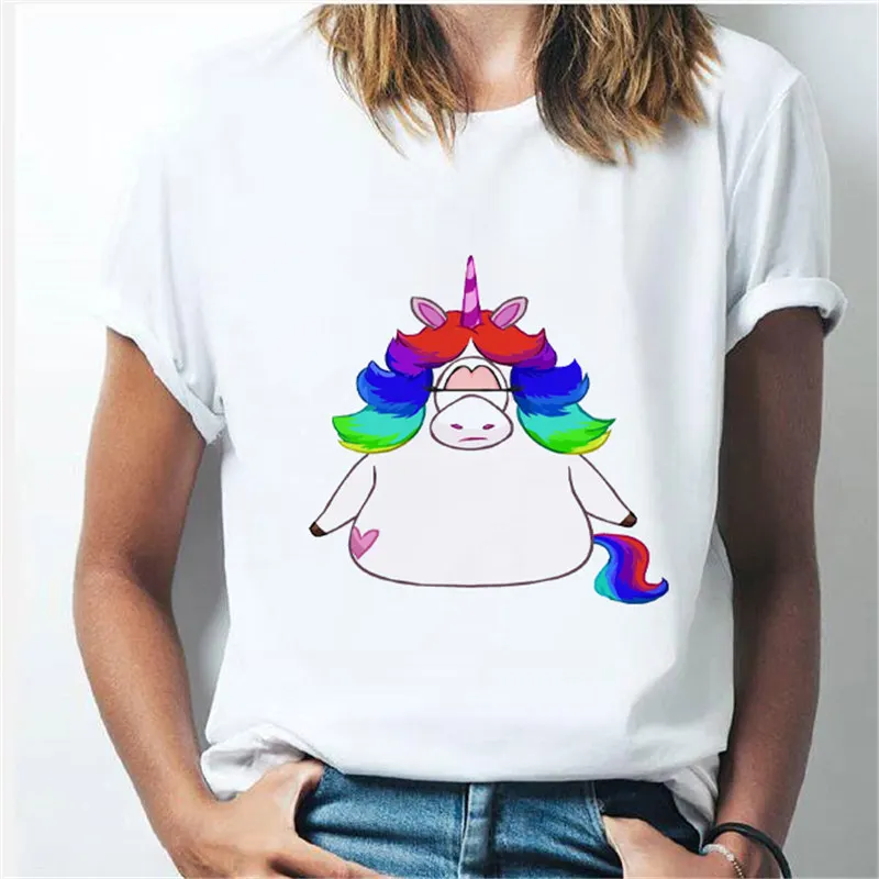 Футболка женская, с единорогом, с коротким рукавом, белая