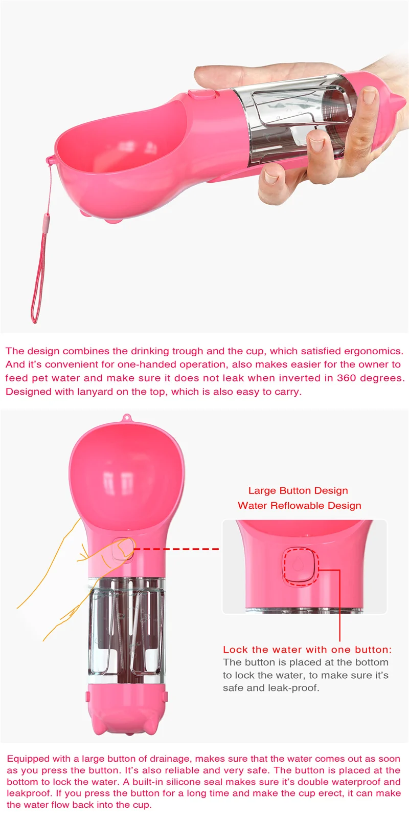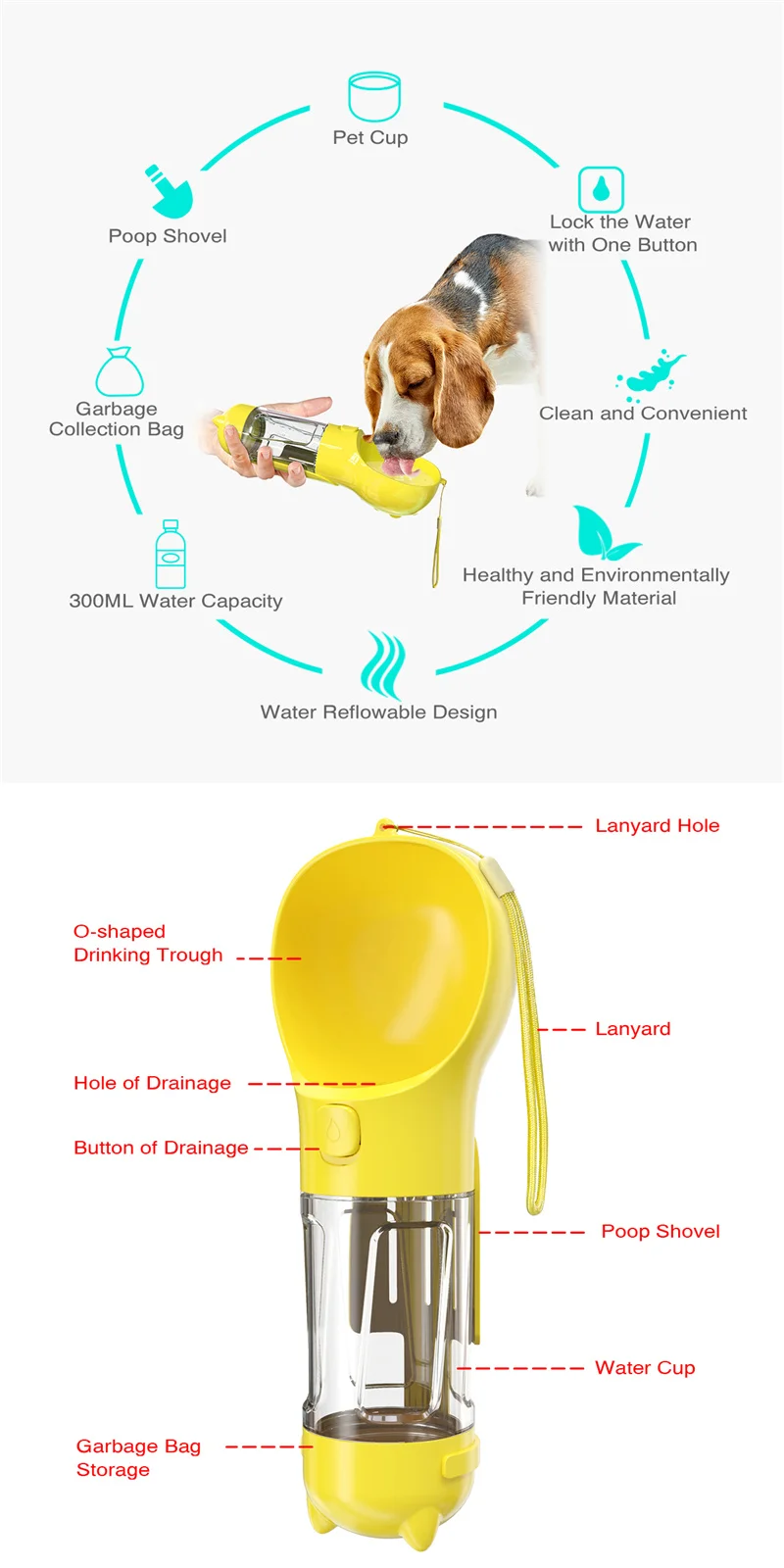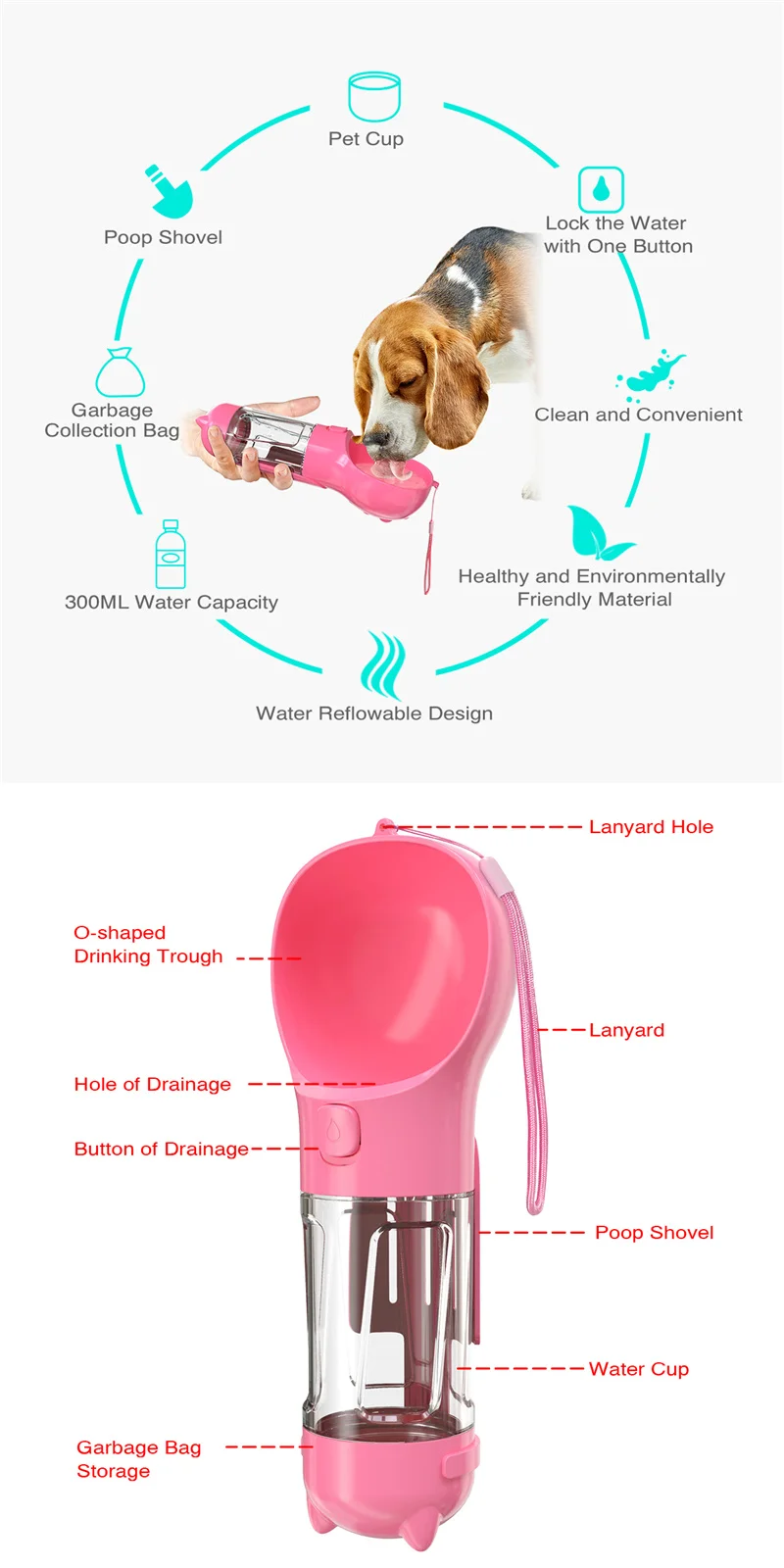 Чашка для воды для питомцев, бутылка для воды для путешествий на открытом воздухе для собак, портативная многофункциональная бутылка для воды, товары для домашних животных