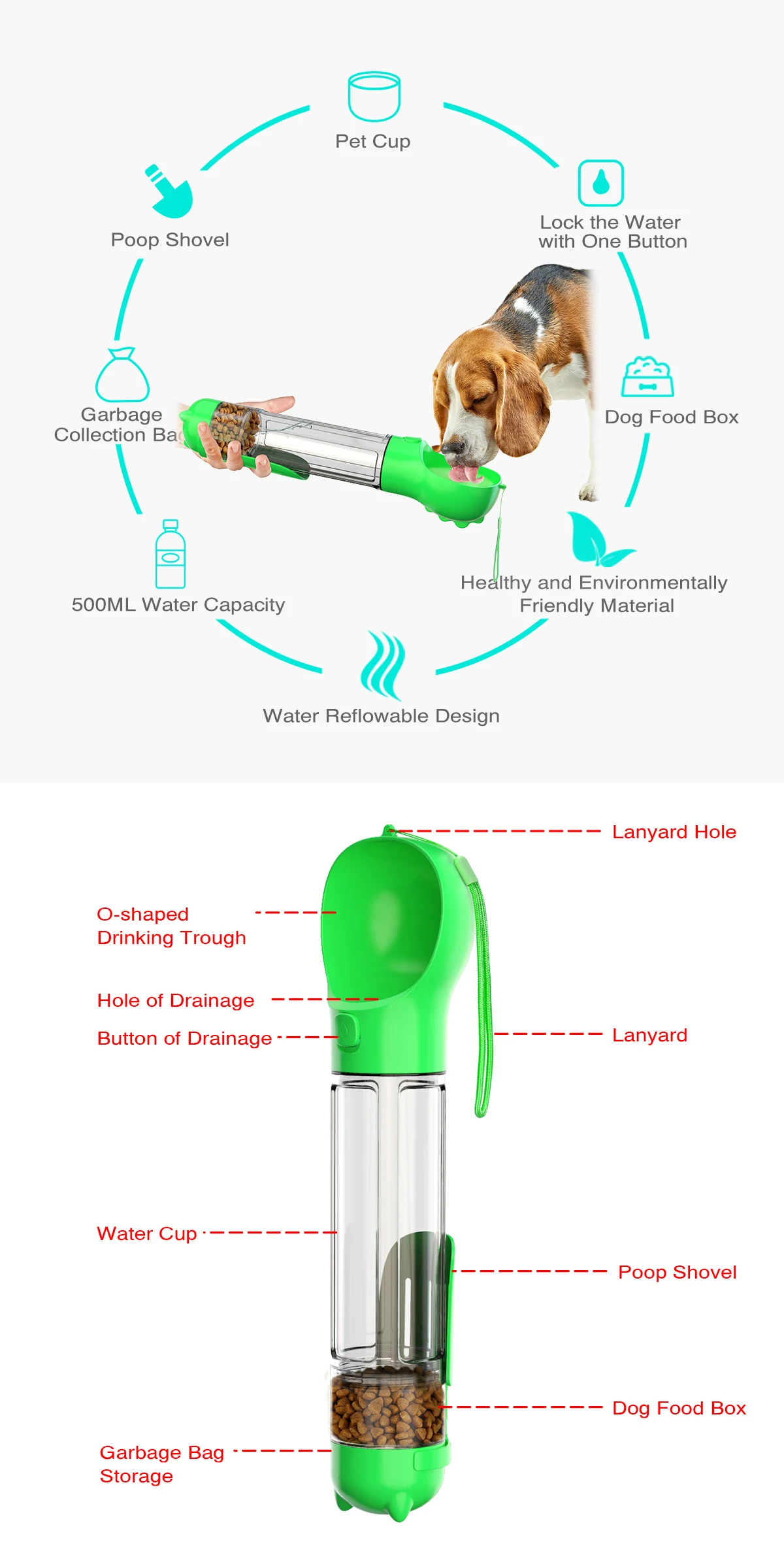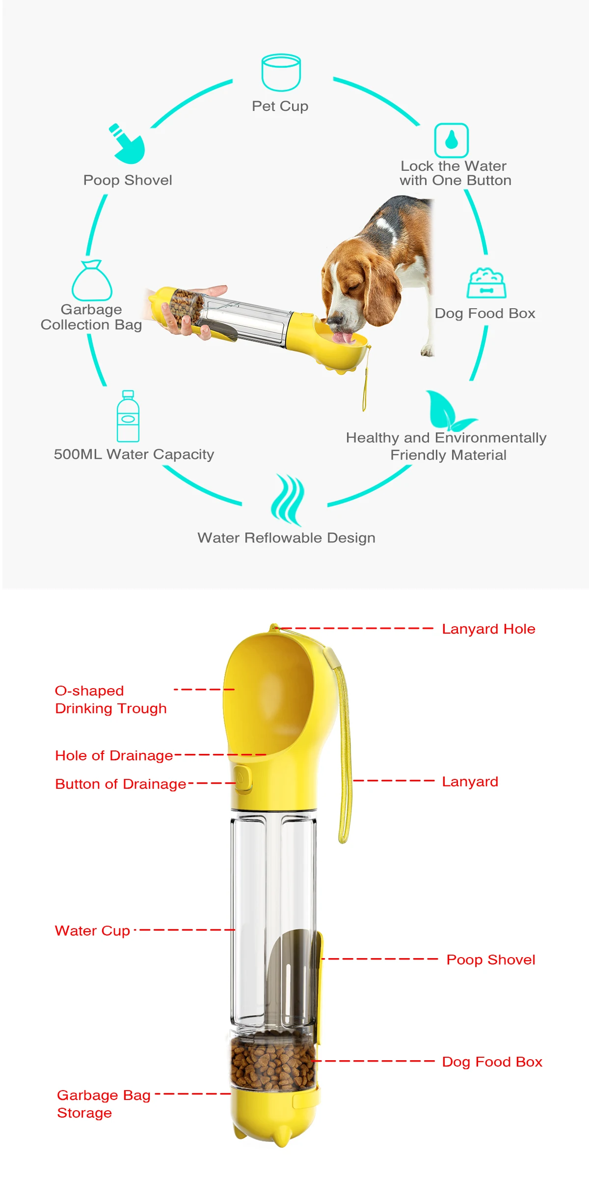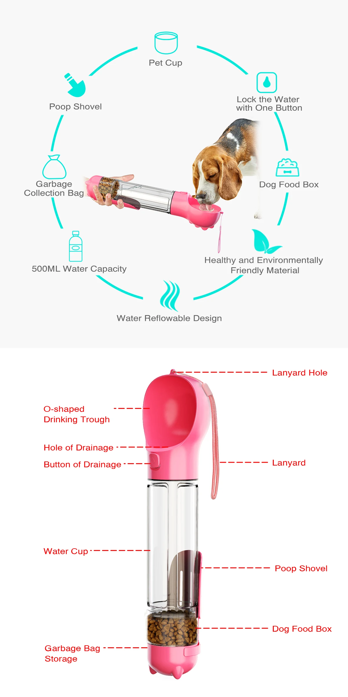 Чашка для воды для питомцев, бутылка для воды для путешествий на открытом воздухе для собак, портативная многофункциональная бутылка для воды, товары для домашних животных