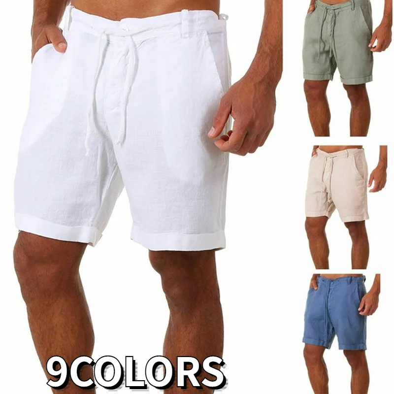 Шорты мужские повседневные льняные, модные однотонные короткие брюк...