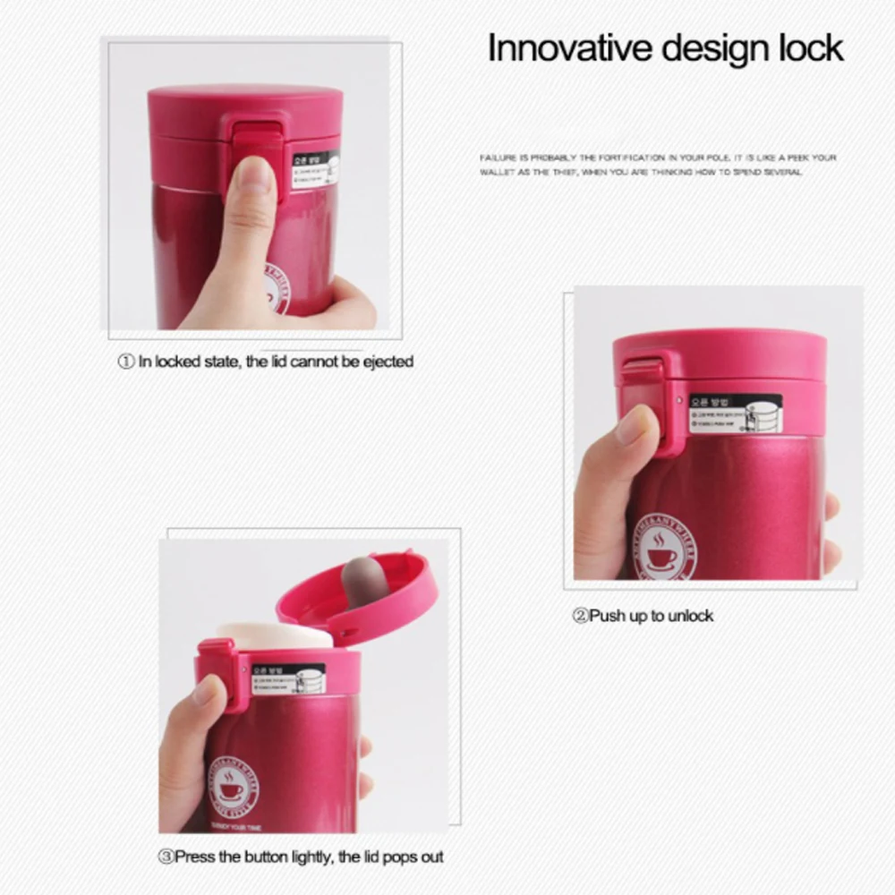 380 мл двойная нержавеющая сталь 304 стакан бутылка для воды Кофейная Кружка Герметичный Термос кружка для путешествий Термокружка бутылка для воды подарки✅Цвет: черный/белый/коричневый/серебристый/розовый красный✅Материал: нержавеющая сталь 304 + нержавеющая сталь 201 + ПК✅Высота: 180 мм✅Диаметр дна: 60 мм✅Верхний диаметр: 80 мм✅Емкость: 380 мл✅Упаковочный лист: 1 * кофейная чашка✅Примечания:1. Из-за ручного измерения, пожалуйста, учитывайте разницу в 1-3 мм, спасибо!2. Из-за разницы между различными мониторами обратите внимание, что изображение может не отражать фактический цвет изделия.✅Описание товара<Изолированные: Наслаждайтесь горячими напитками, такими как чай, кофе и горячий шоколад, или такими напитками, как ледяная вода и лимонад, чтобы хранить в холодильнике в течение нескольких часов.<Хорошая производительность: покрытие поверхности может гарантировать, что эти наружные чашки с крышками не потеют и не передадут тепло.<Безопасный Материал: Изготовлен из пищевой, без BPA и без свинца прочной нержавеющей стали и ПК.<Напиток в любое время: Наши кофейные чашки обеспечивают легкость в открывании кнопки и защелкивают крышку для легкого доступа.<Фильтр из нержавеющей стали: оснащен съемным фильтром для сыпучего чая.<Современный дизайн: подходит для большинства держателей чашек. Устойчивая к ржавчине и герметичная многофункциональная кружка с защелкой подходит для детей, подростков, студентов и пожилых людей.<Герметичная и защищенная от брызг крышка: Пищевая ПК крышка, защелкивающаяся крышка обеспечивает герметичную защиту, легко носить с собой.<Портативный: светильник, эргономичный дизайн, легко захватывается.<Чистка: рекомендуется ручная стирка.<Теплое напоминание:1. Перед первым использованием очистите бутылку.2. Пожалуйста, не используйте стальную шерсть для очистки.3. Очистите и высушите после использования.4. Пожалуйста, держитесь подальше.5. Держите детскую бутылочку в недоступном для детей месте.