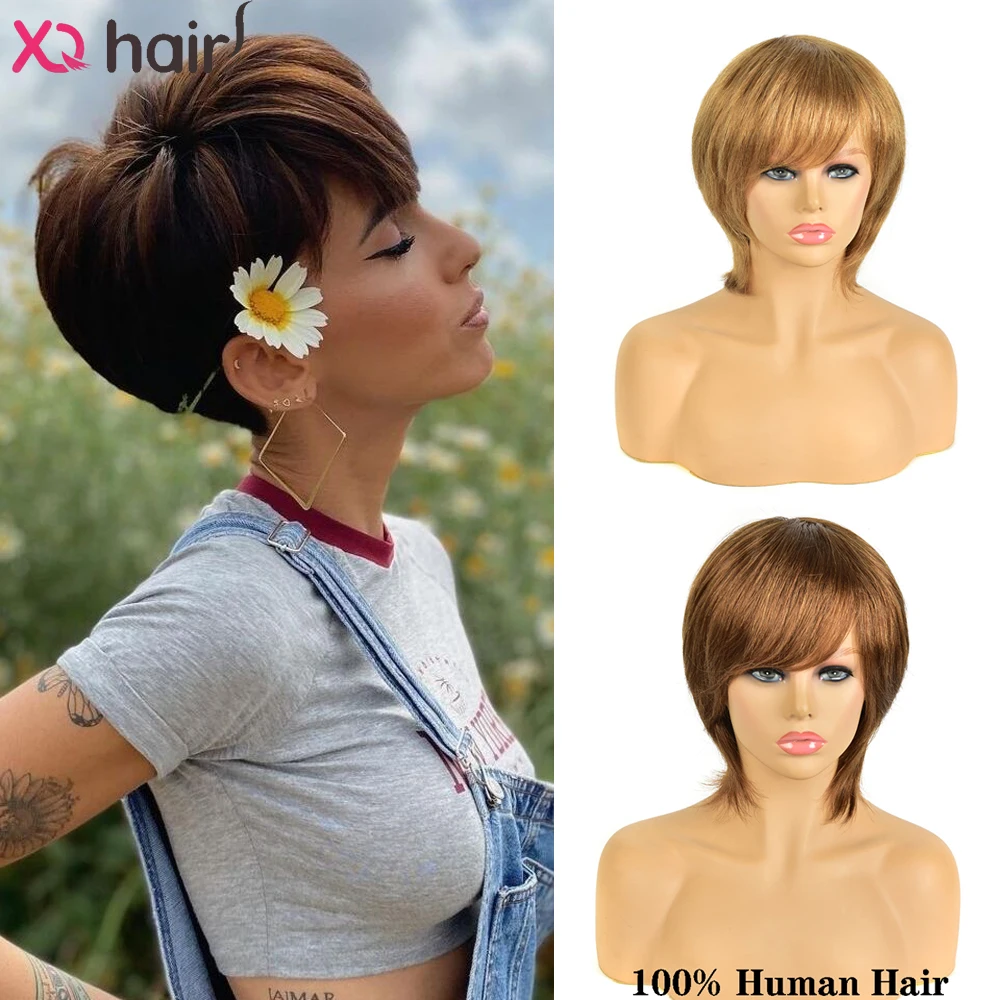 Волосы XQ, малазийские короткие прямые 100% человеческие волосы, парики для женщин, человеческие волосы без повреждения кутикулы, человеческие волосы, парики, парики для вырезания кутикулы