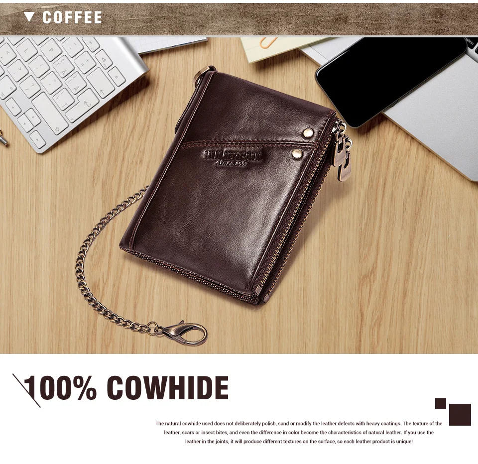 Бесплатная гравировка 100% мужской кошелек из натуральной кожи полусапожки качественные ботинки портмоне для мужчин с функцией блокировки Rfid карты держатель цепи портфель