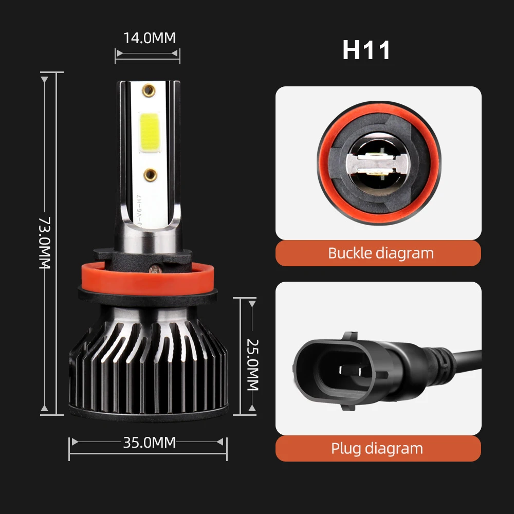 Комплект из 2 предметов, мини Размеры автомобилей головной светильник H4 H7 светодиодный 3000K 4300K 5000K 6500K 8000K 20000K H1 H8 H9 H11 9005 9006 светодиодный лампы автомобильная Противо-Туманная светильник 12V