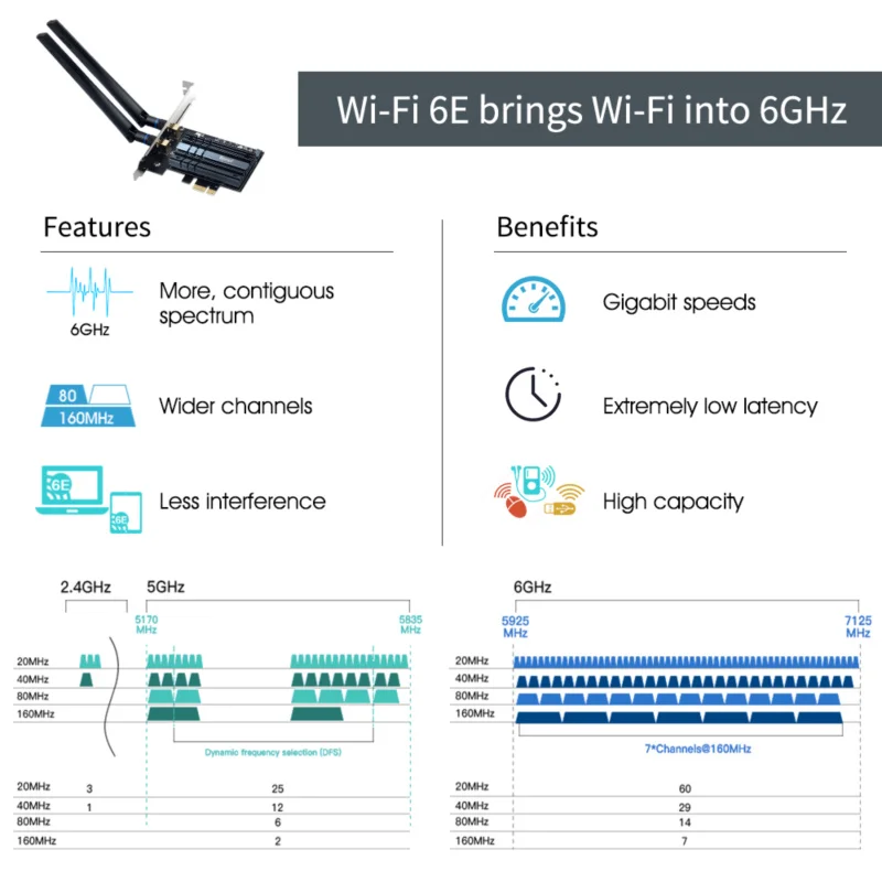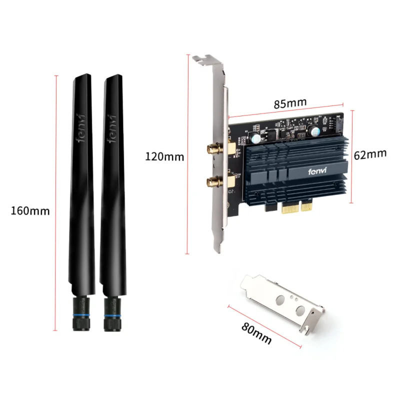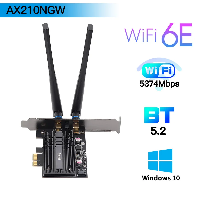 Бренд: fenvi; Модель: FV-AXE3000S PCI-E PC wifi адаптер Chipest: Intel AX210 чипсет; Wi-Fi с Bluetooth-compatible5.2; Стандарт IEEE: 802.11ax/ac/a/b/g/n; Двухдиапазонный 2,4 ГГц-300 Мбит/с/5Ghz-2400Mbps; Примечание: Скорость до 2400 Мбит/с (маршрутизатор должен Поддержка 802.11ax); Поддержка MU-MIMO; операционные системы: Поддержка только Windows 10*64 бит и Linux; Совместимость с: Почти компьютер с разъемом PCI Express (PCI-E 1X/4X/16X); Специально разработанный радиатор обеспечивает стабильную и надежную непрерывную работу; Антенны с высоким коэффициентом усиления 6DBi обеспечивают лучший прием сигнала; Загрузка драйвера: вы можете скачать драйвер на веб-сайте fenvi или попросить нас.