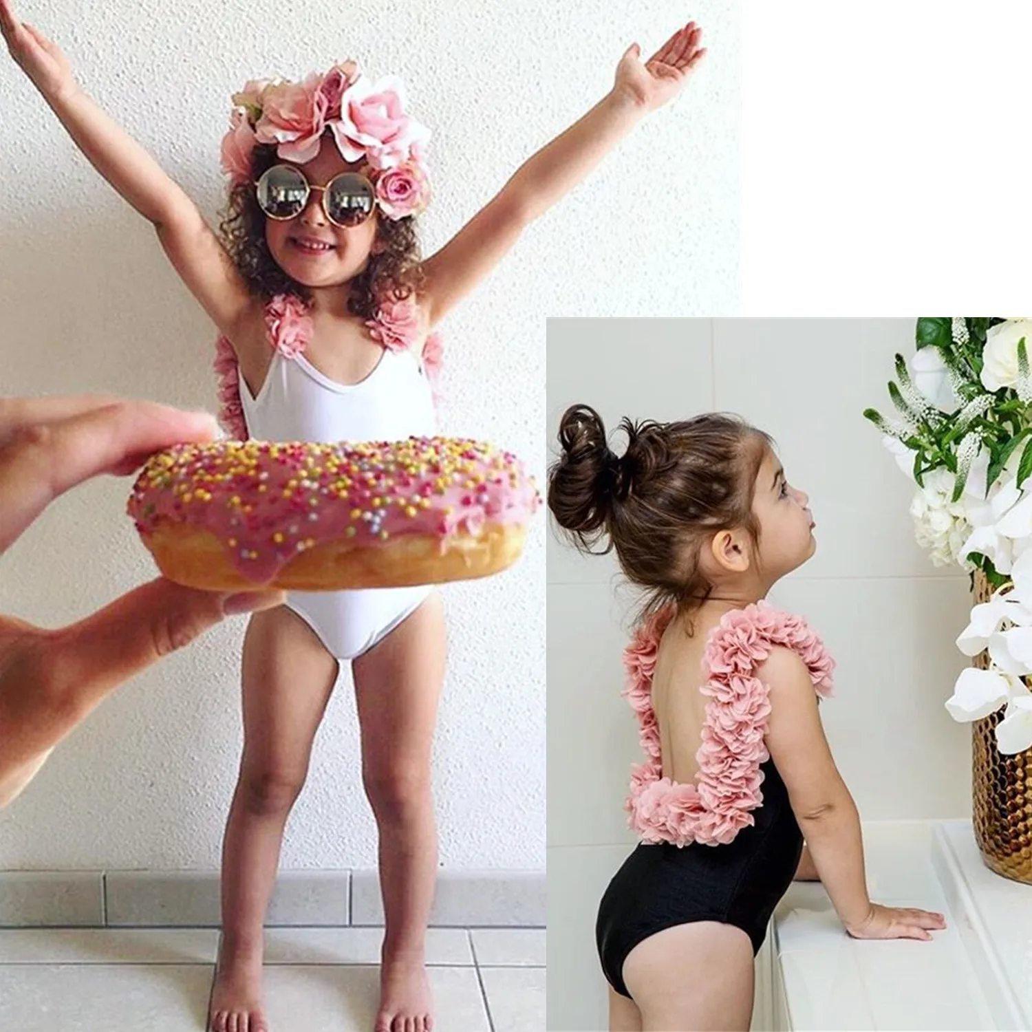 Одежда для малышей для девочек, купальные костюмы; Детское бикини костюм с цветочным рисунком и оборками для плавания пляжная одежда на выход для детей, один предмет, открытая спина, купальник, Одежда для младенцев