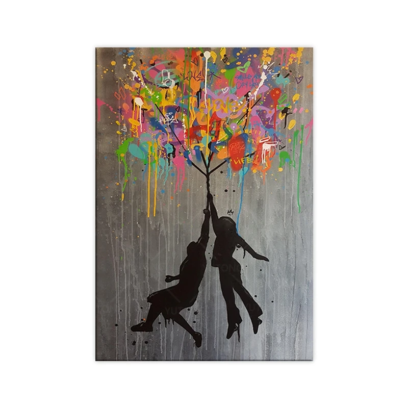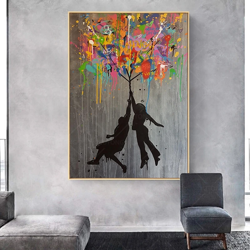 Bansky уличное искусство холст картина мальчик и девочка граффити л...