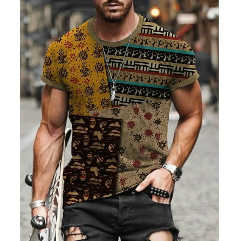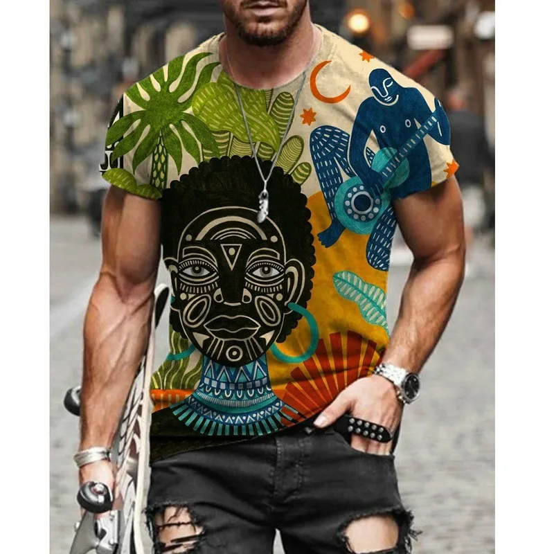Мужская рубашка с вырезом, рубашка с принтом, африканская националь...