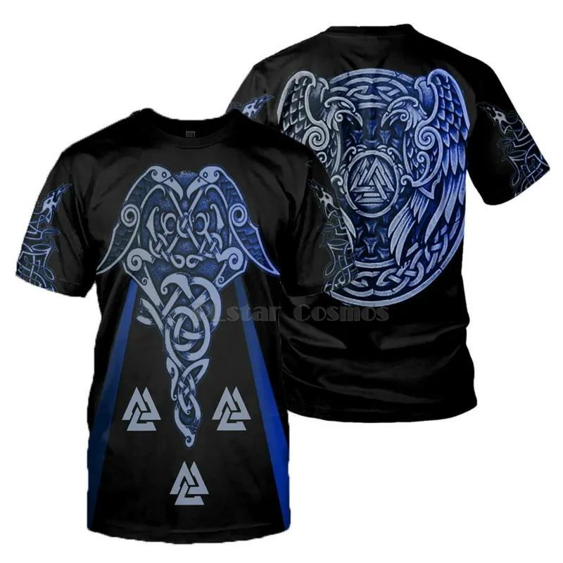 Мужская футболка с принтом викингов, черная Повседневная Свободная ...