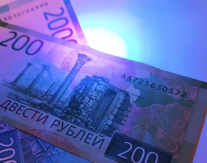 Шло чуть меньше месяца. Упаковано в коробку и пупырку, сам фонарик не пострадал. Кушает 3х мизинчиковые батарейки (в комплект не входят). Крепление ремешка к фонарику через отверстие рядом с кнопкой (довольно неудачное решение). Для проверки купюр подходит идеально, смолу пока не пробовал засвечивать. В целом можно брать.