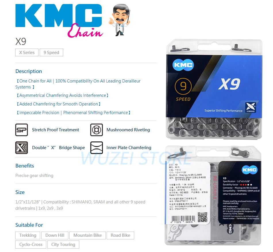 Комплект цепочек SUNSHINE для горного и шоссейного велосипеда, 9 В, 11-232528323640424650T, звездная цепь KMC X9 для SHIMANO