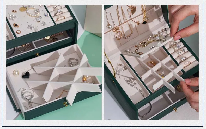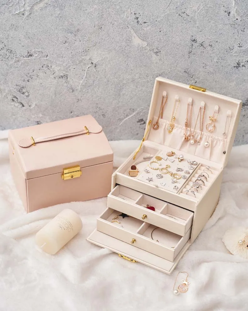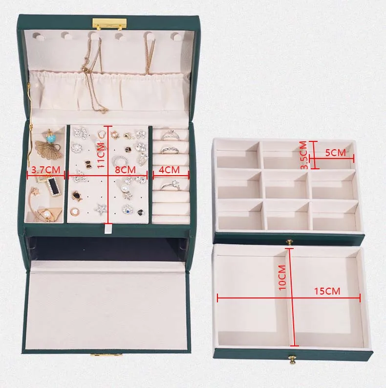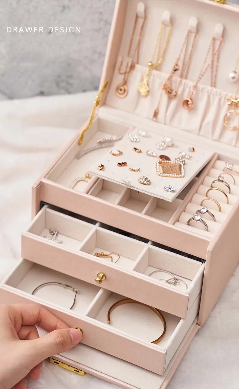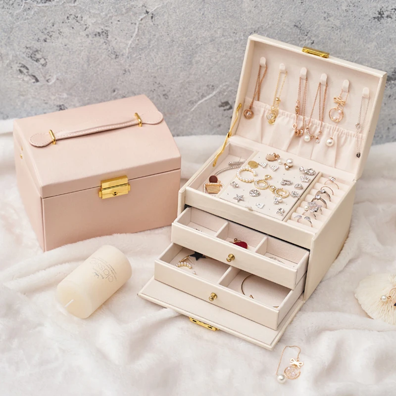 Большая трехслойная шкатулка для ювелирных изделий из искусственной кожи, держатель для ожерелий, серег, колец, шкатулка, органайзер для хранения косметики, коробка для подарков