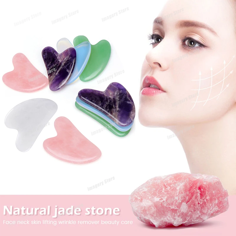 Натуральный розовый кварц массажер для лица, нефрит роликовый массаж гуаша скребок, лица гуаша доска с украшением в виде кристаллов камня нефрита массажер, для тела Уход за скребок гуаша для лица,,нефритовый массажер