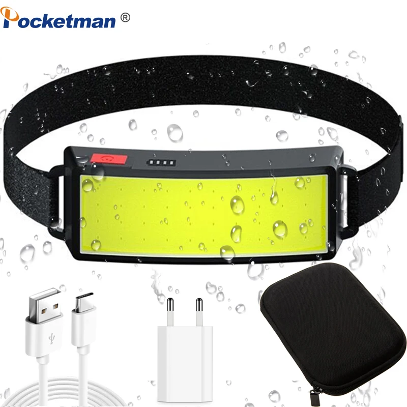 Мощный светодиодный фонарь COB с зарядкой от USB, портативный водонепроницаемый Головной фонарь со встроенным аккумулятором, рабочее освещение, налобный фонарь