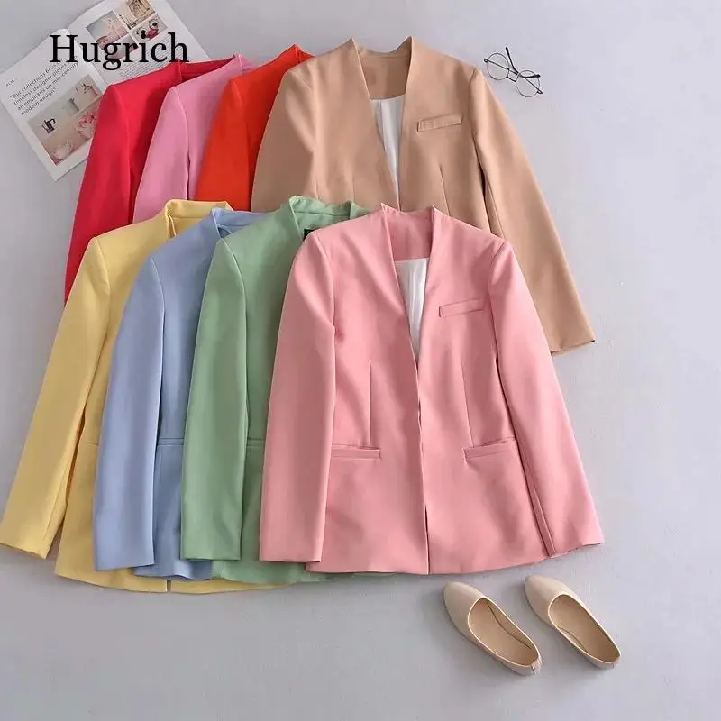 2021 осень Стиль Женский, зеленый, синий, розовый; Сезон лето; Повседневные блейзеры, брюки комплект Офисные женские туфли пиджак для Slim Fit