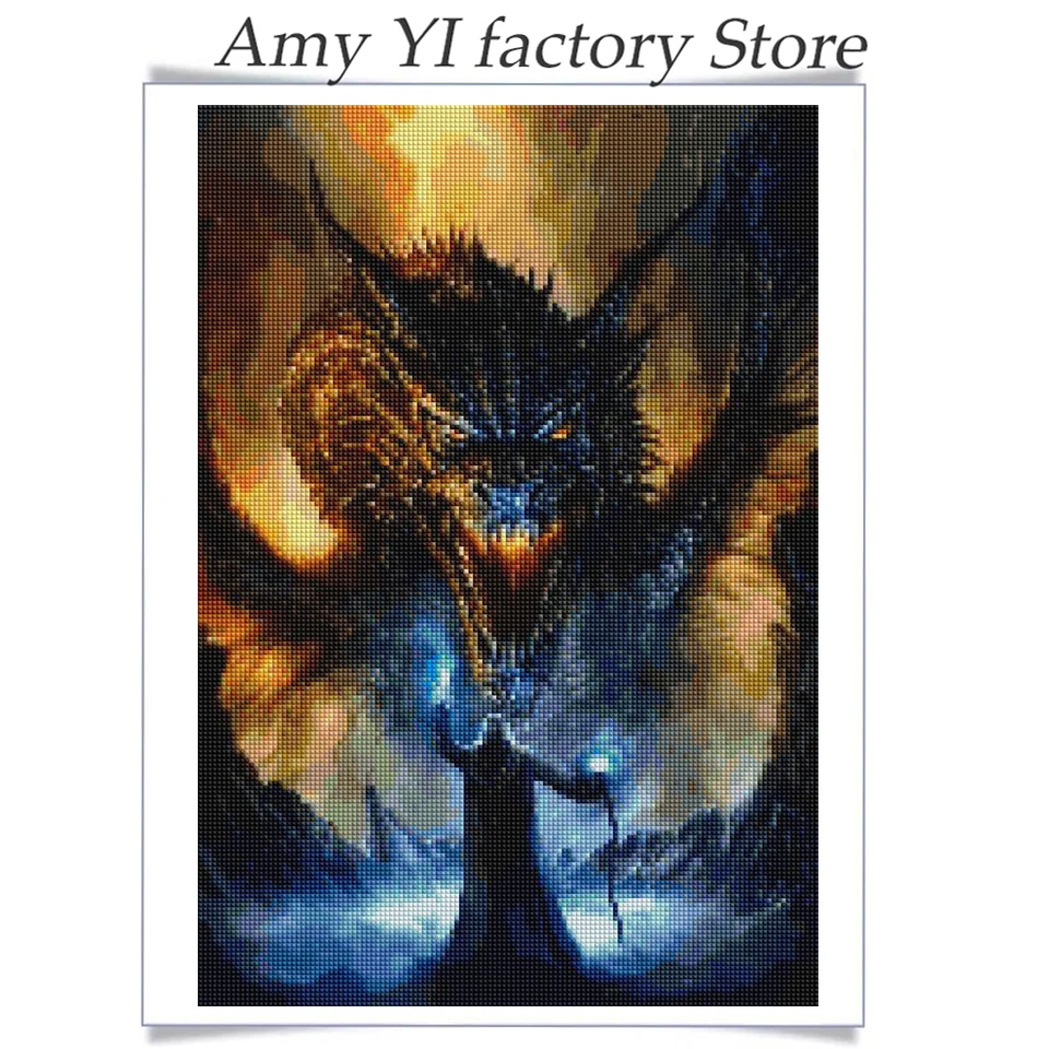 Бриллиантовая картина AMY-AMY-5D DIY черный дракон, вышивка, квадратные алмазыкруглые алмазы, мозаика, украшение для дома, подарок
