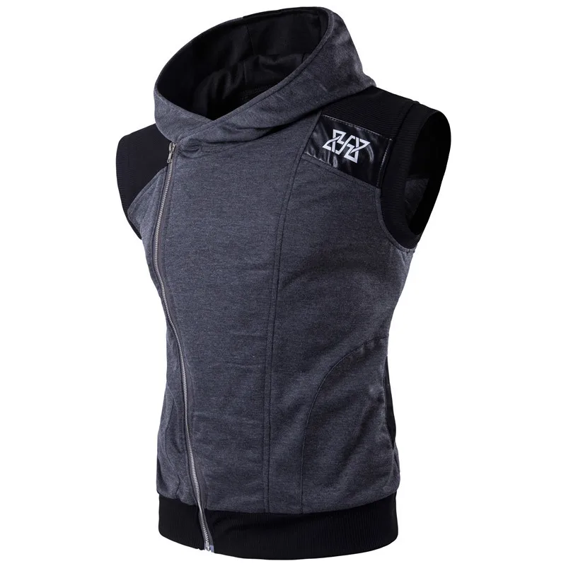 Мужская толстовка без рукавов, с капюшоном, кожаная, в стиле пэчвор...