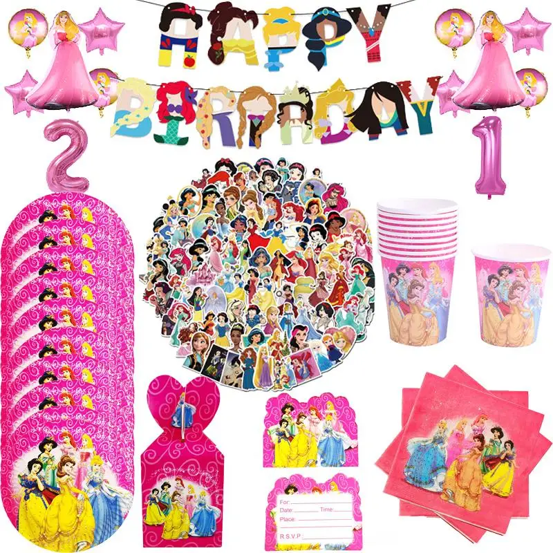 Disney, шесть принцесс, один год, день рождения, одноразовый фотоальбом, баннер, подставка для торта, украшение для дня рождения, товары для вечеринки