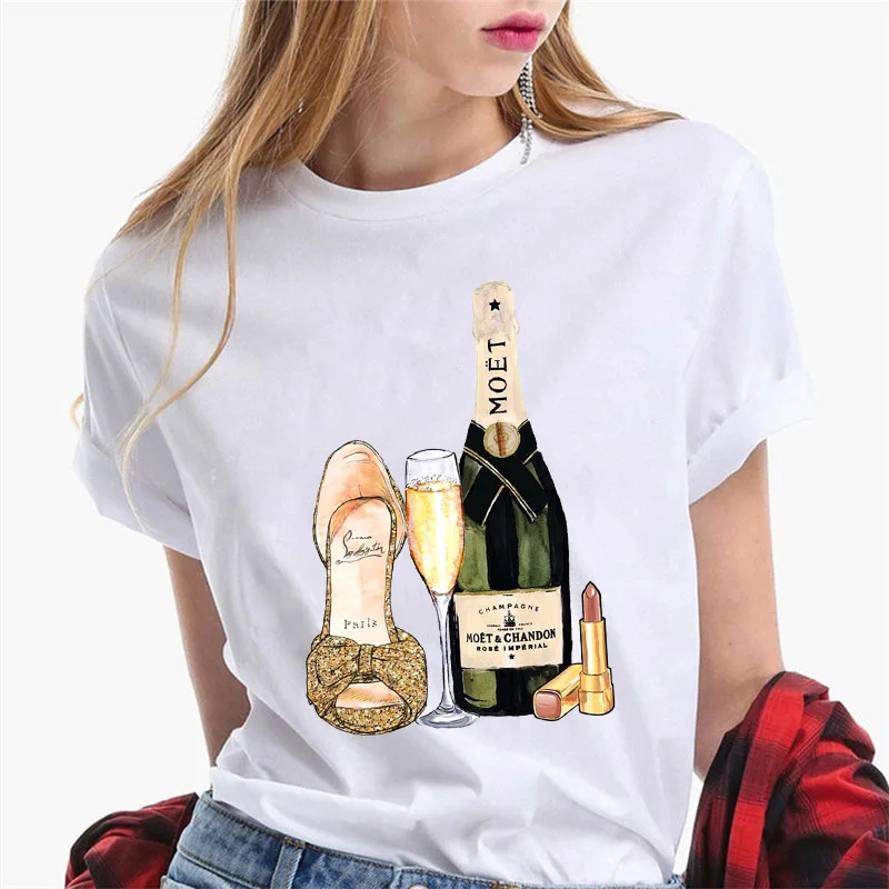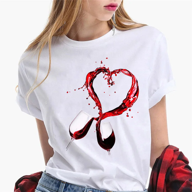 Футболка женская 2021 уличной моды дамы футболки бокал для вина Гра...