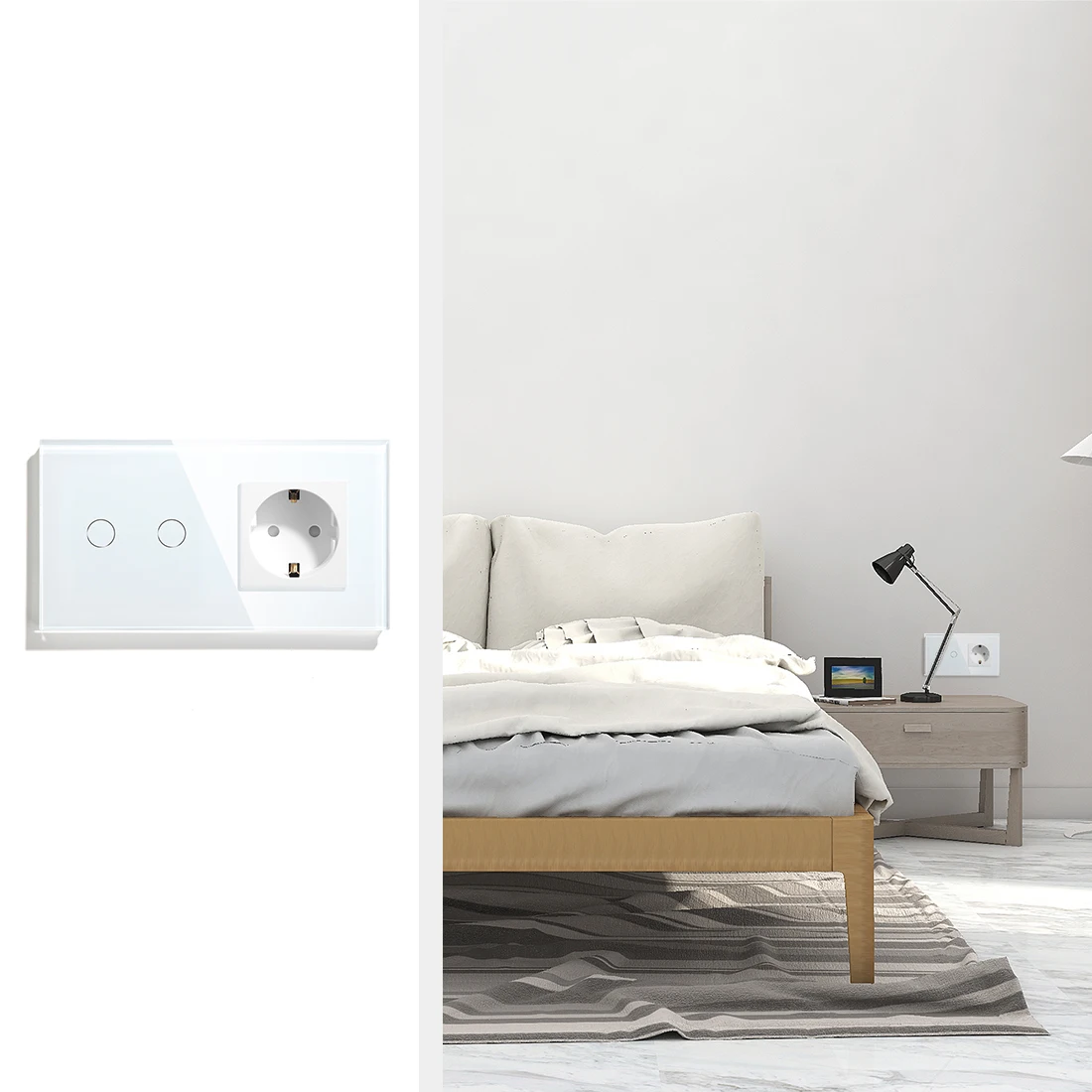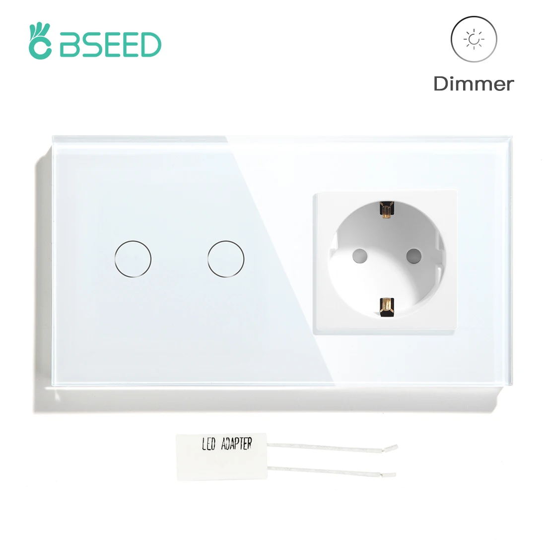 Сенсорный светодиодный диммер BSEED, 2 конца, 1 канал, сенсорный переключатель с евророзеткой, 16 А, Синяя подсветка, Хрустальное стекло