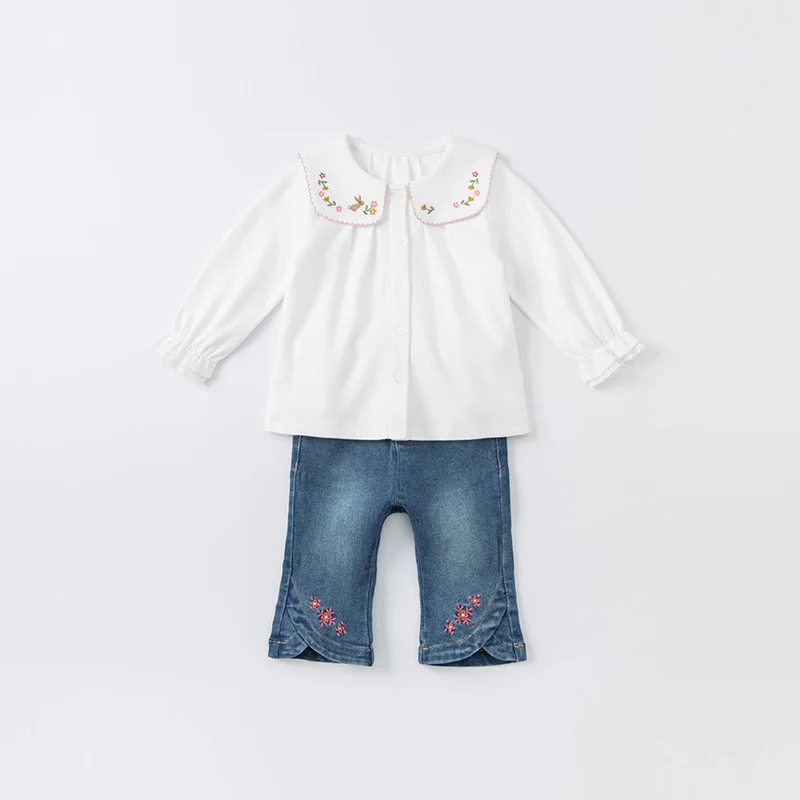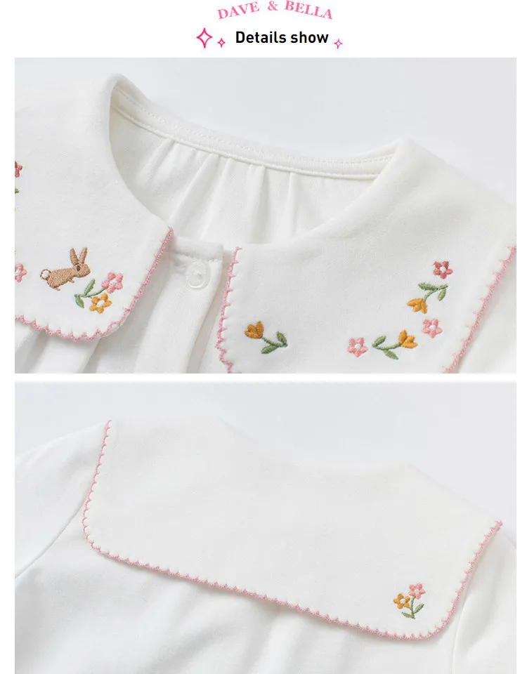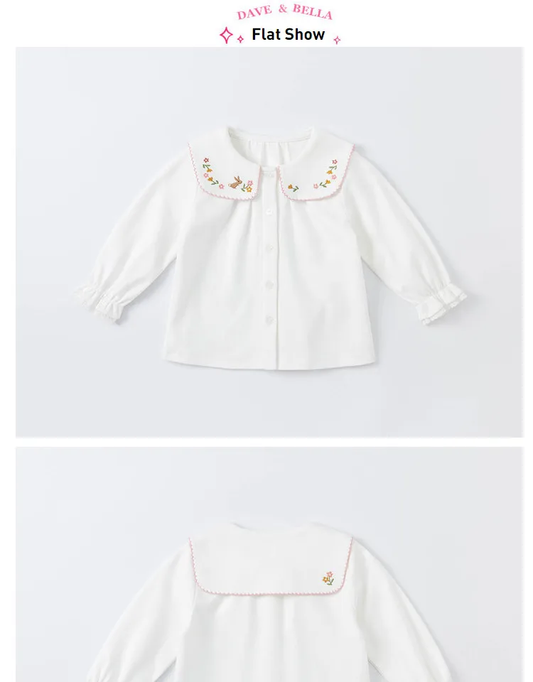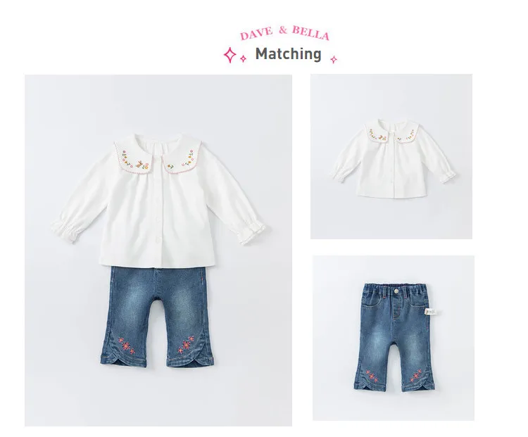 DBZ19045-1 нижнее белье в стиле бренда dave bella осень Футболки с цветочным принтом для маленьких девочек Футболка с вышивкой для детей; Детская верхняя одежда для девочек; Модные футболки с принтом