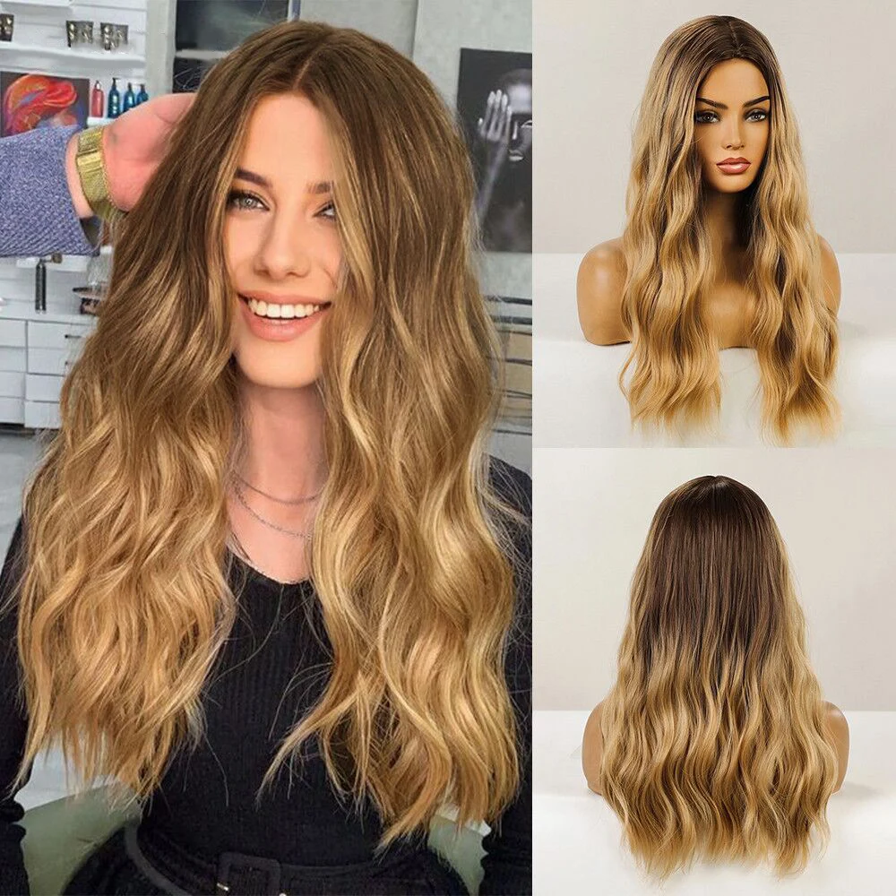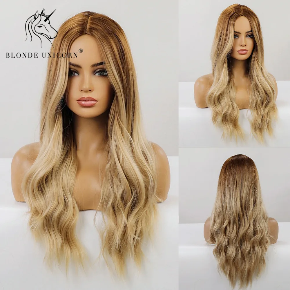 Парик из Синтетических Длинных Волнистых Волос блонд, единорог, темно-коричневый, с корнем Омбре, блонд-коричневый для женщин, термостойкие волосы из волокна для вечерние