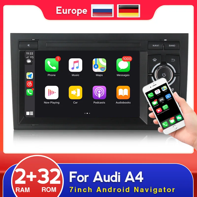 Автомобильная система Android, автомобильное радио, зеркальный экран Carplay для AudiA4S4 B7 B6 RS4 2002-2008 HD 1024x600 GPS-навигация BT RDS FMAM