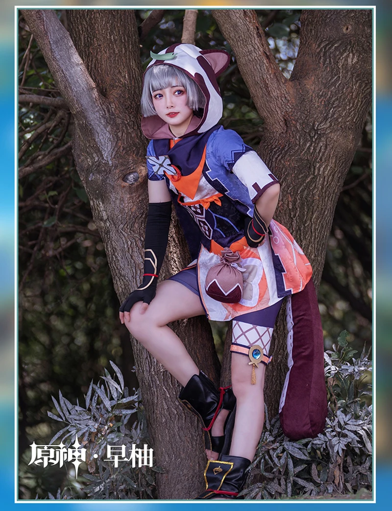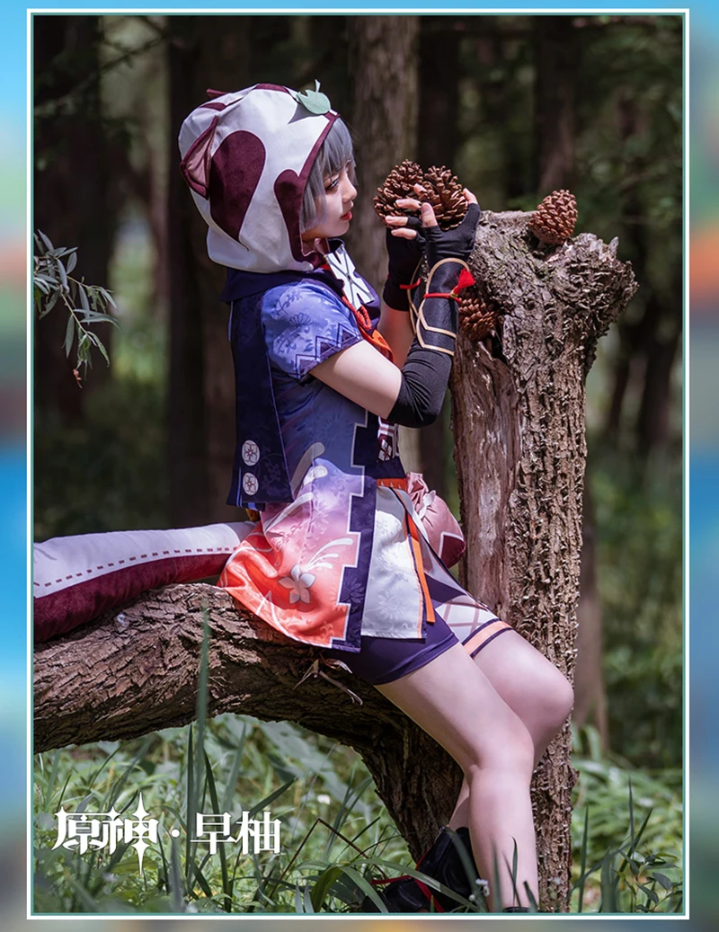Игра Genshin воздействия Саю косплей костюм парик обувь костюм Лолита кимоно для женщин наряд-Униформа красивое платье на Хэллоуин, шляпа хвост Полный