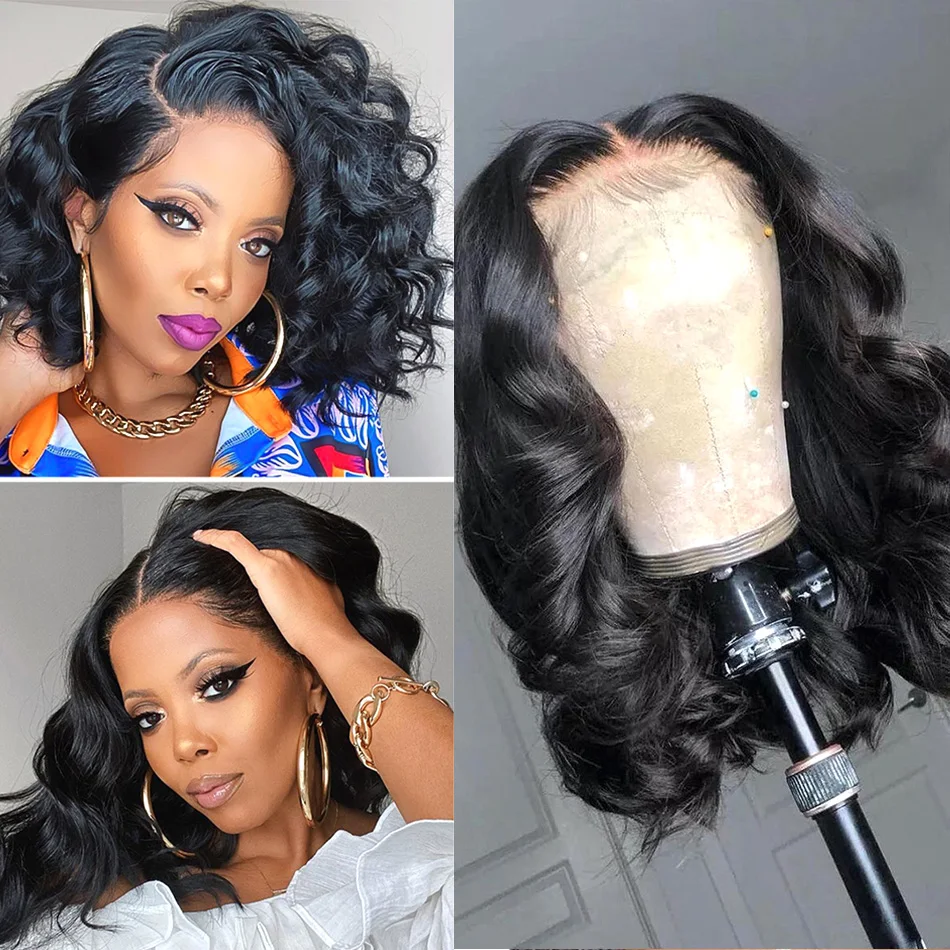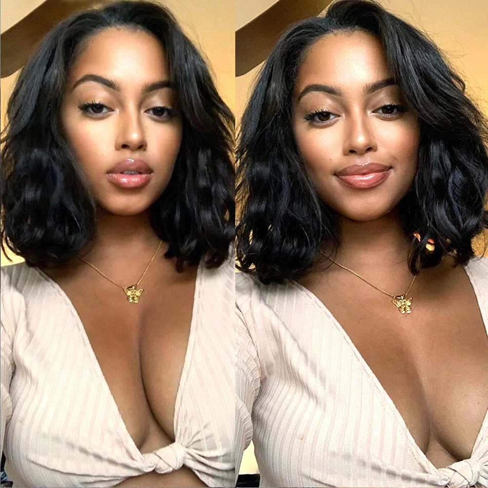 Короткий парик боб, волнистые, прозрачные кружевные передние парики...