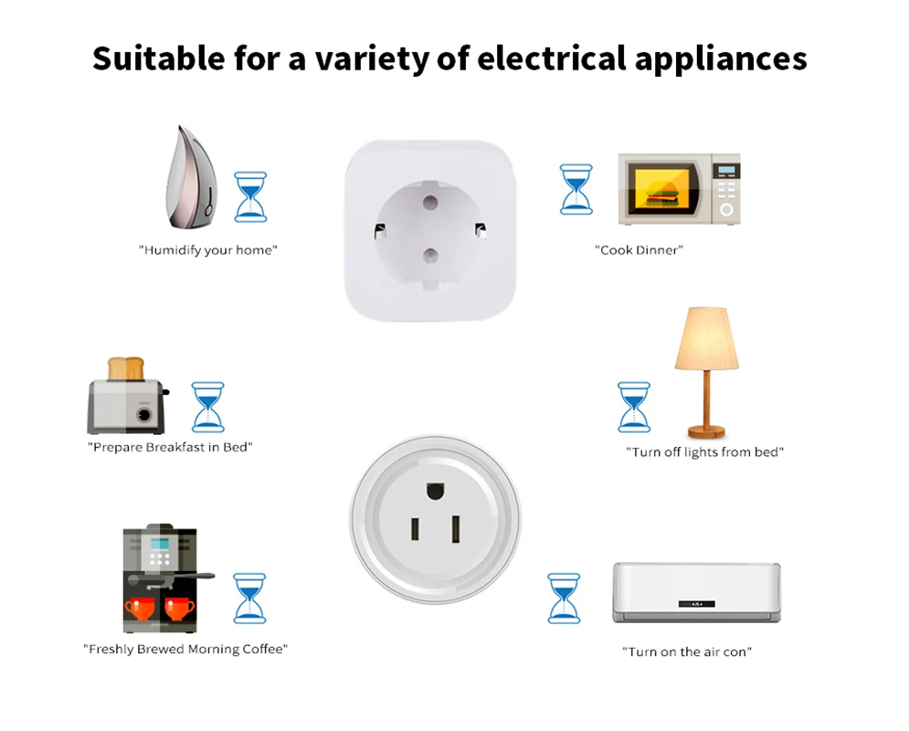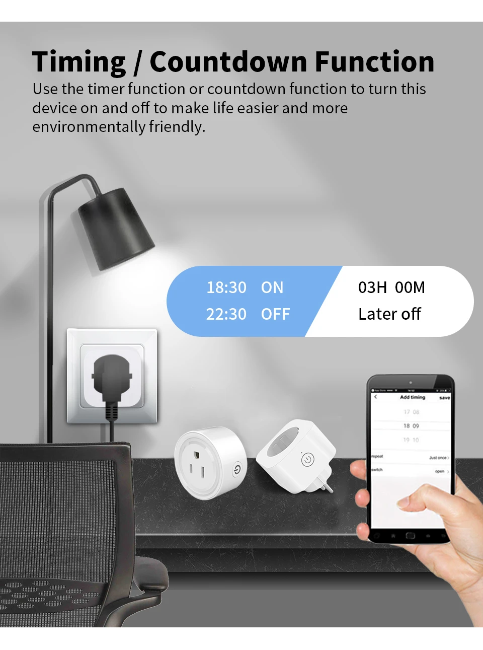 1. Пульт дистанционного управления с помощью приложения.С помощью смартфона или планшета удаленно Управляйте умным Wi-Fi вилкой питания с помощью бесплатного приложения smart Life или TuyaSmart из любого места в любое время. Легко управлять бытовой техникой.