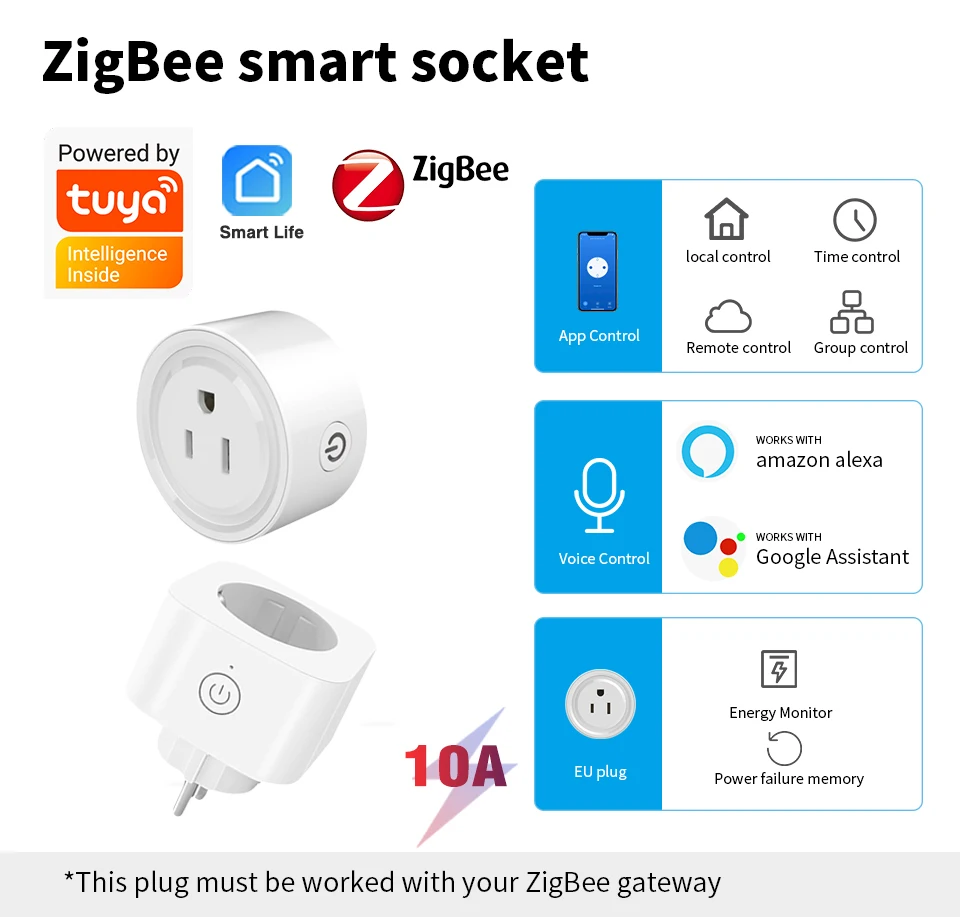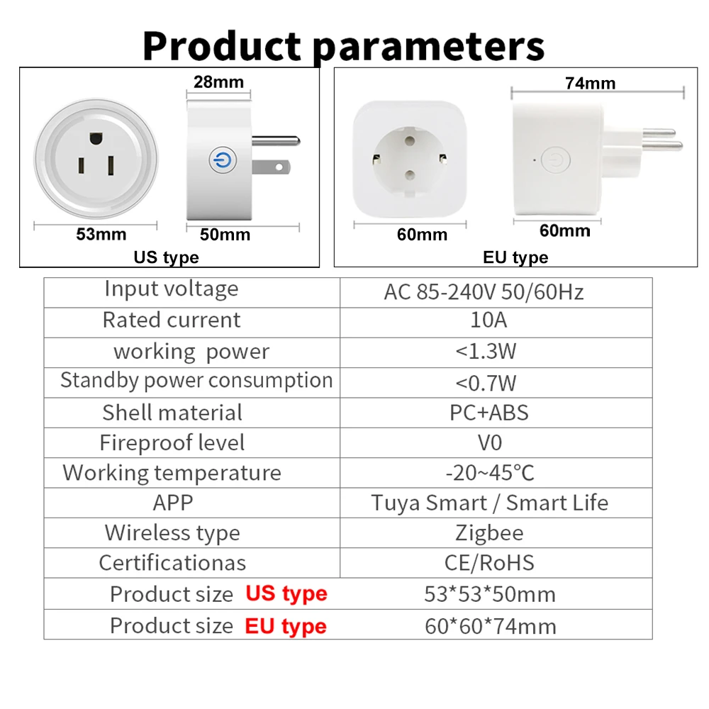 Tuya zigbee умный дом розетки 10A непосредственно работать с Alexa Google Home AI голосовой мобильный телефон дистанционное управление ЕС и США Plug