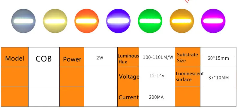 12 В 2 Вт COB плоский источник светильник лампа шарик белый оранжевый желтый красный зеленый синий фиолетовый 60*15 мм длинная полоса Алюминиевая СВЕТОДИОДНАЯ чип-плата
