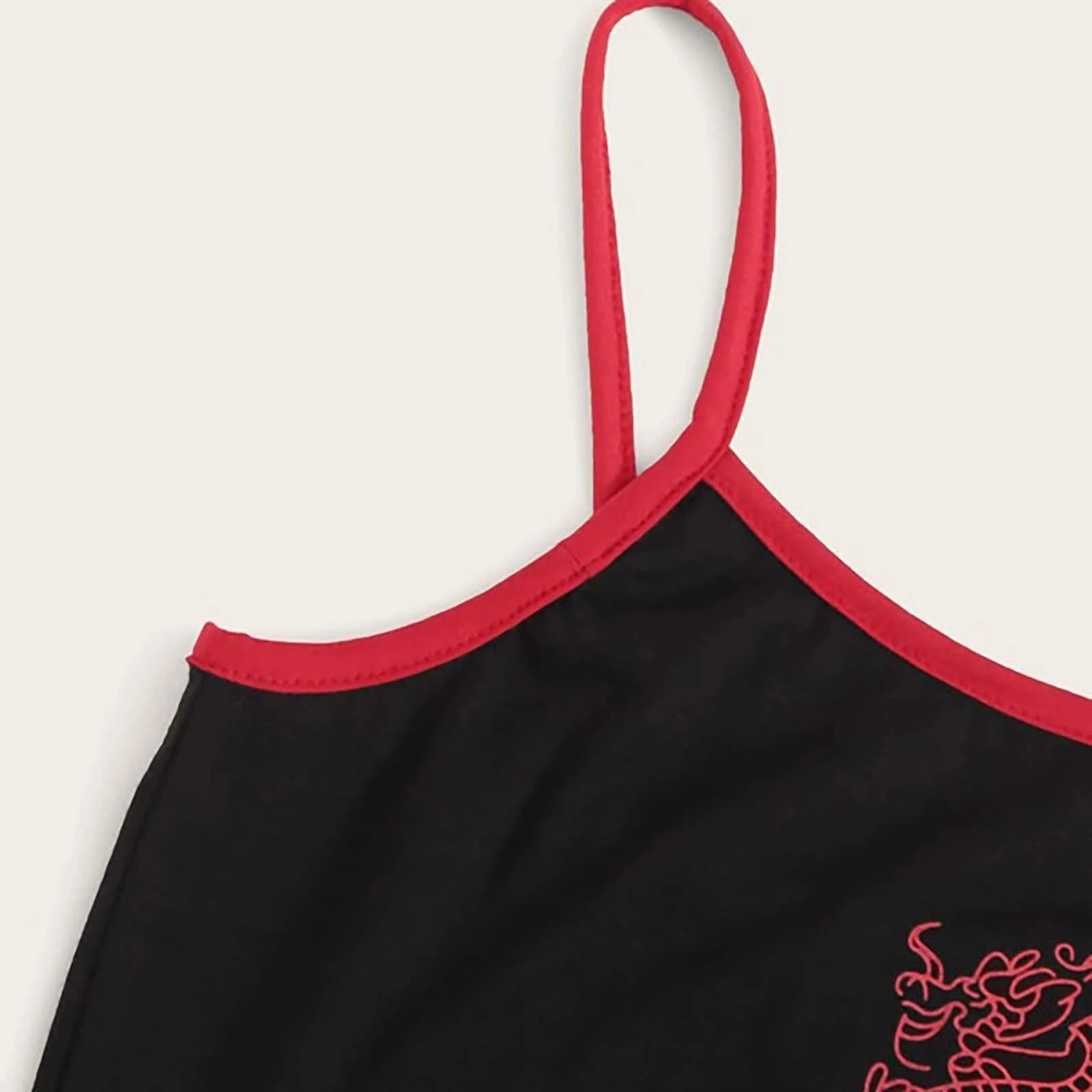 Пижамный комплект, на тонких бретелях, с буквенным принтом, без рук...
