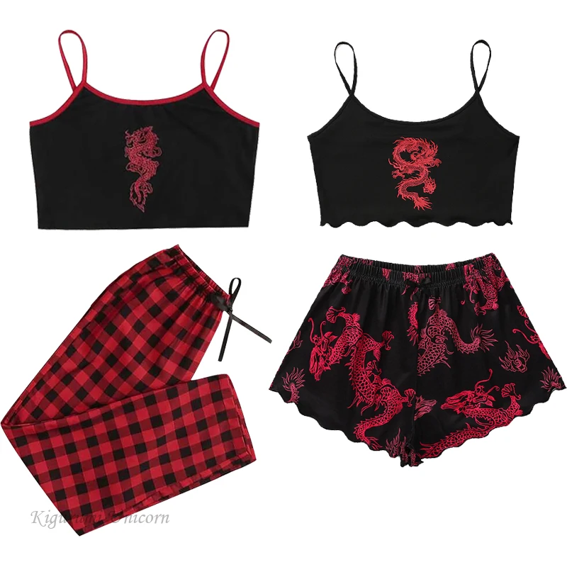 Модные пижамные комплекты, сексуальная женская одежда для сна с принтом дракона и животных, нижнее белье, Женская домашняя одежда, летняя Пижама для женщин