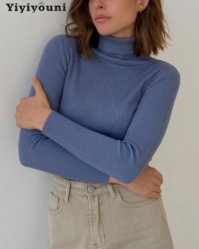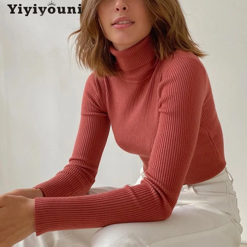 Свитер Женский вязаный Yiyiyouni, с воротником-хомутом, Осень-зима