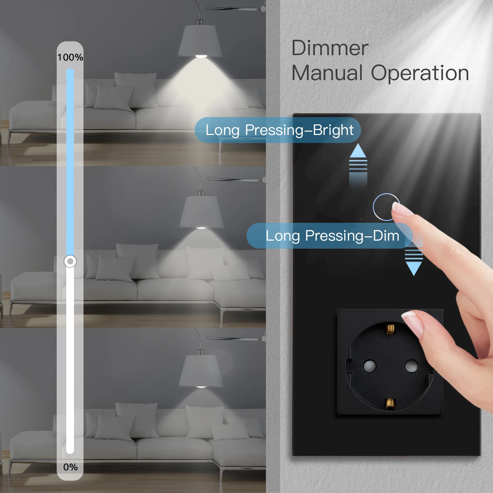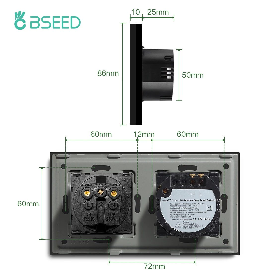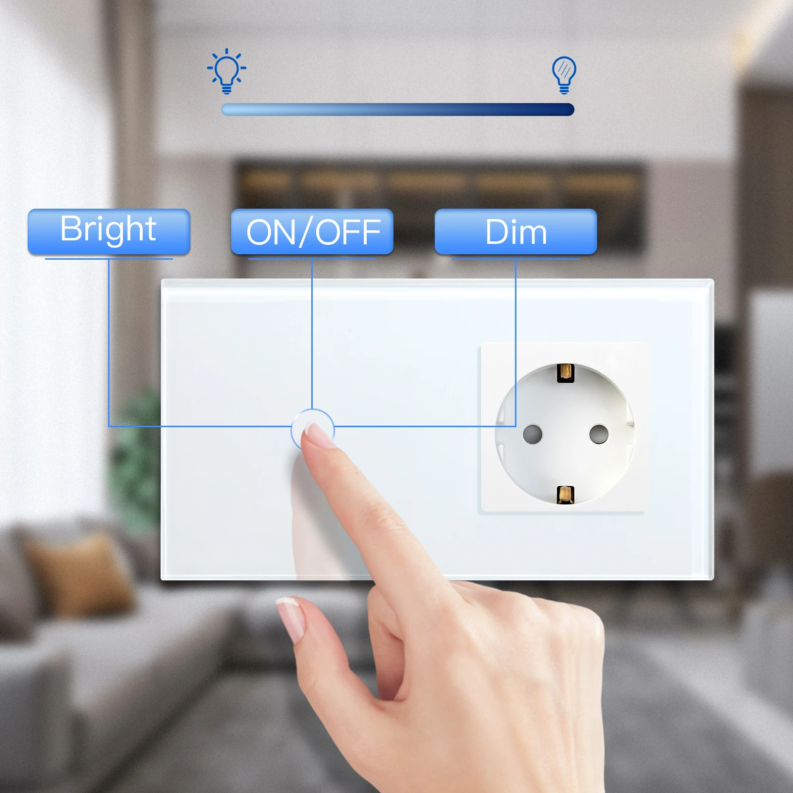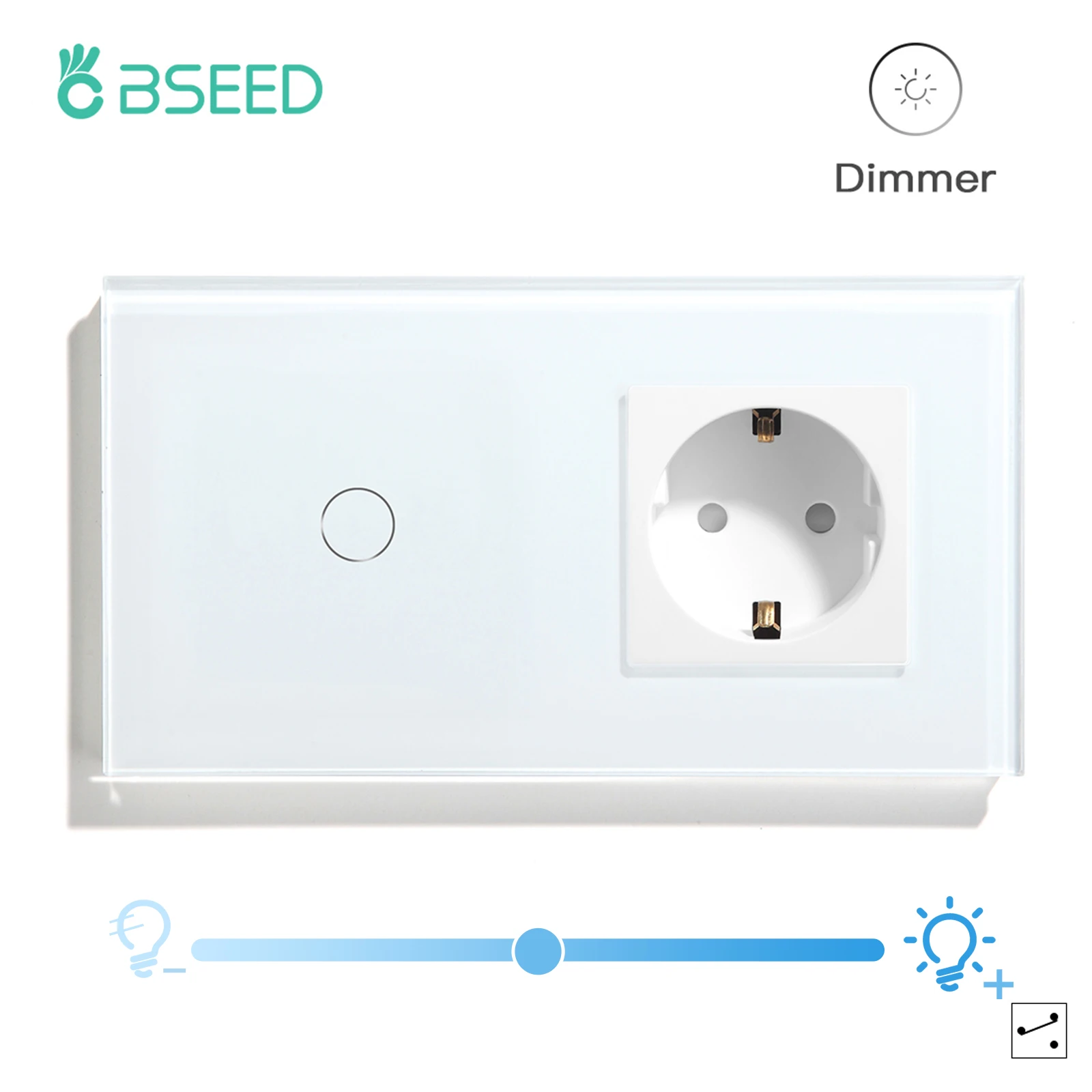 Настенный сенсорный диммер BSEED, 1 комплект, 2 полосы, диммеры для светодиодного освещения с розеткой, 16 А, стандарт ЕС, кристаллические стекла