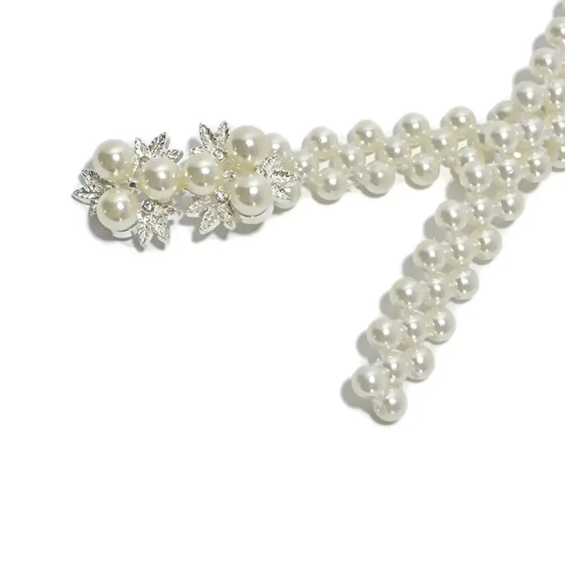 Женский тонкий пояс из искусственного жемчуга в три ряда, свадебный пояс невесты с цветами из металлического сплава, стразы, Декор, букетная Талия