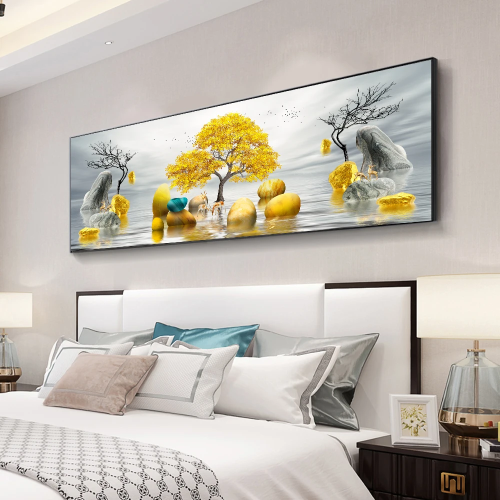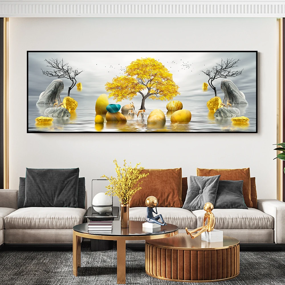 Счастливый Золотой олень, картины на холсте, китайский ландшафт, Настенная картина для гостиной, Настенный декор