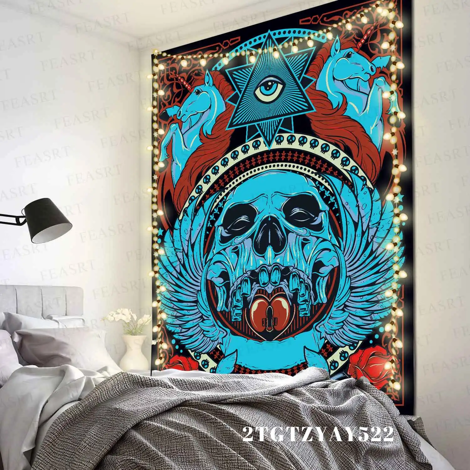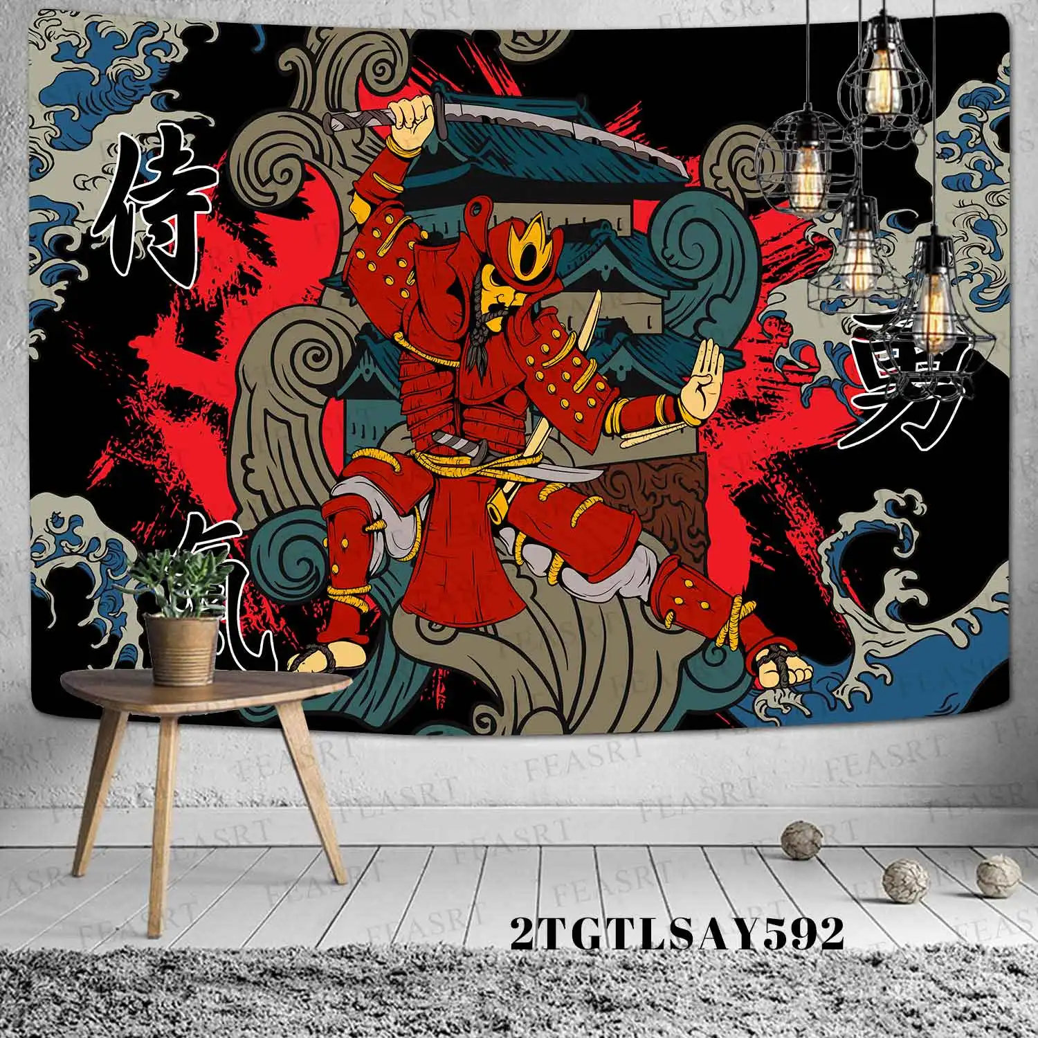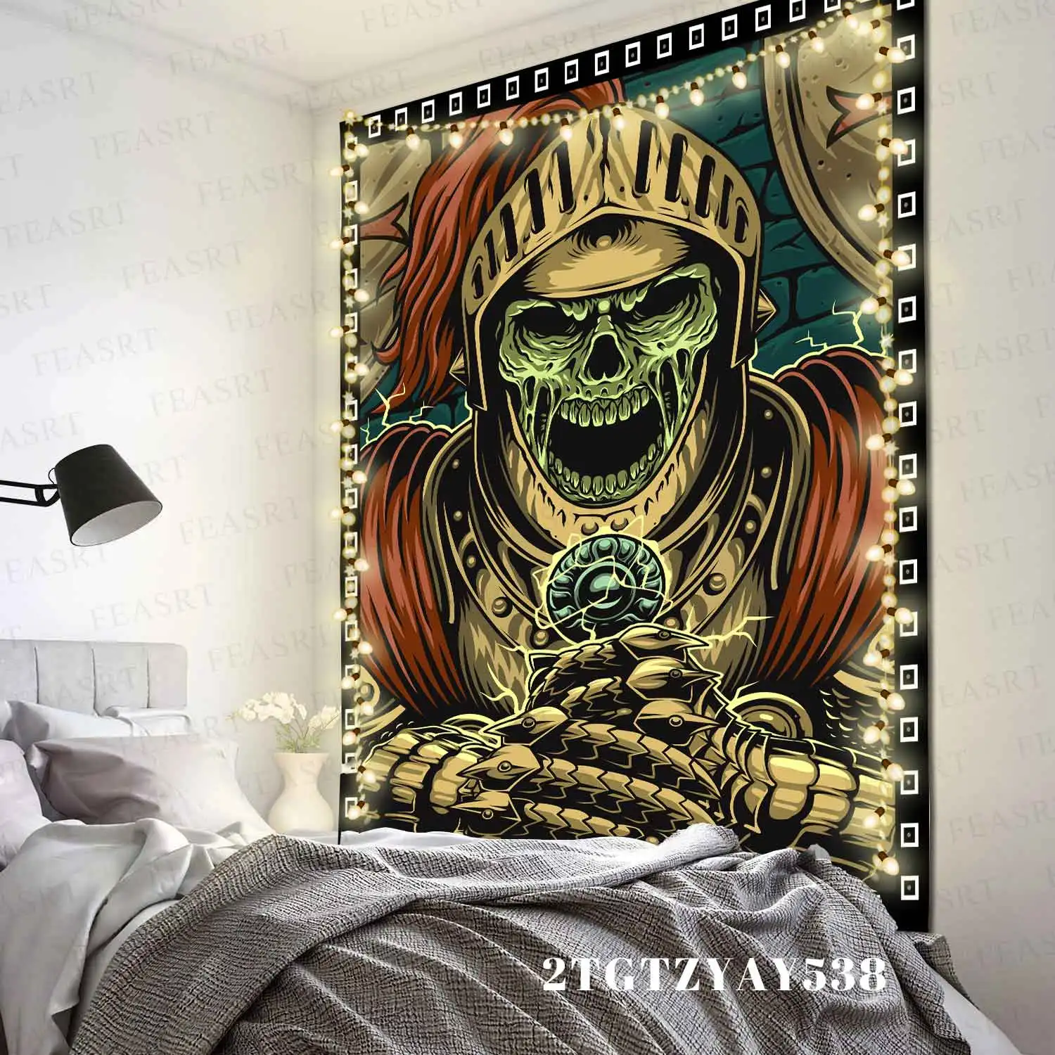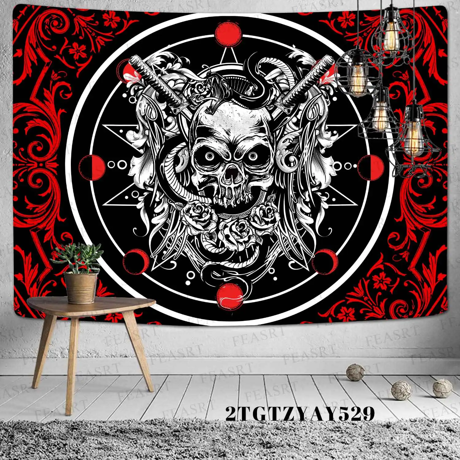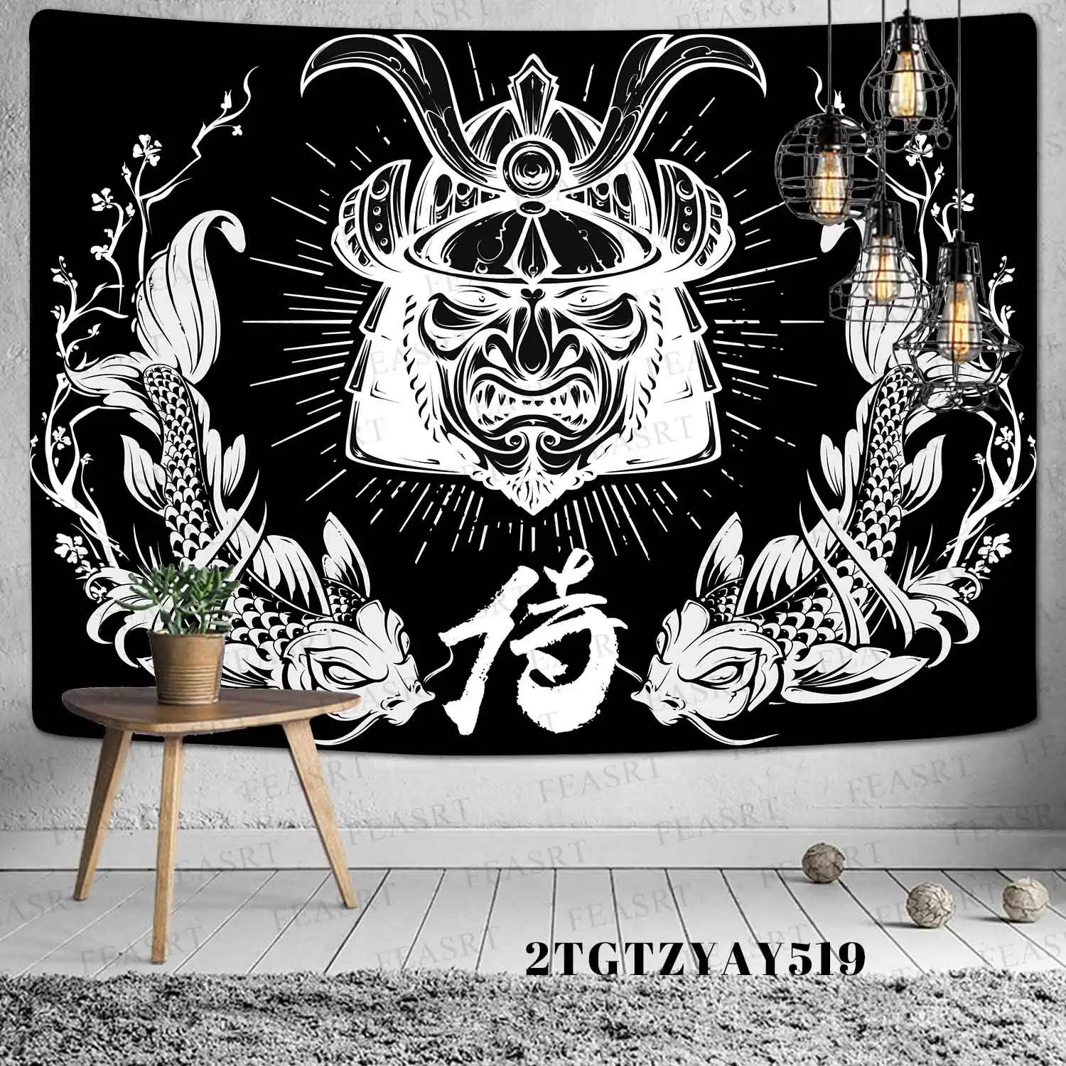 Готический гобелен в виде черепа, японский самурайский гобелен, психоделический гобелен для гостиной, спальни