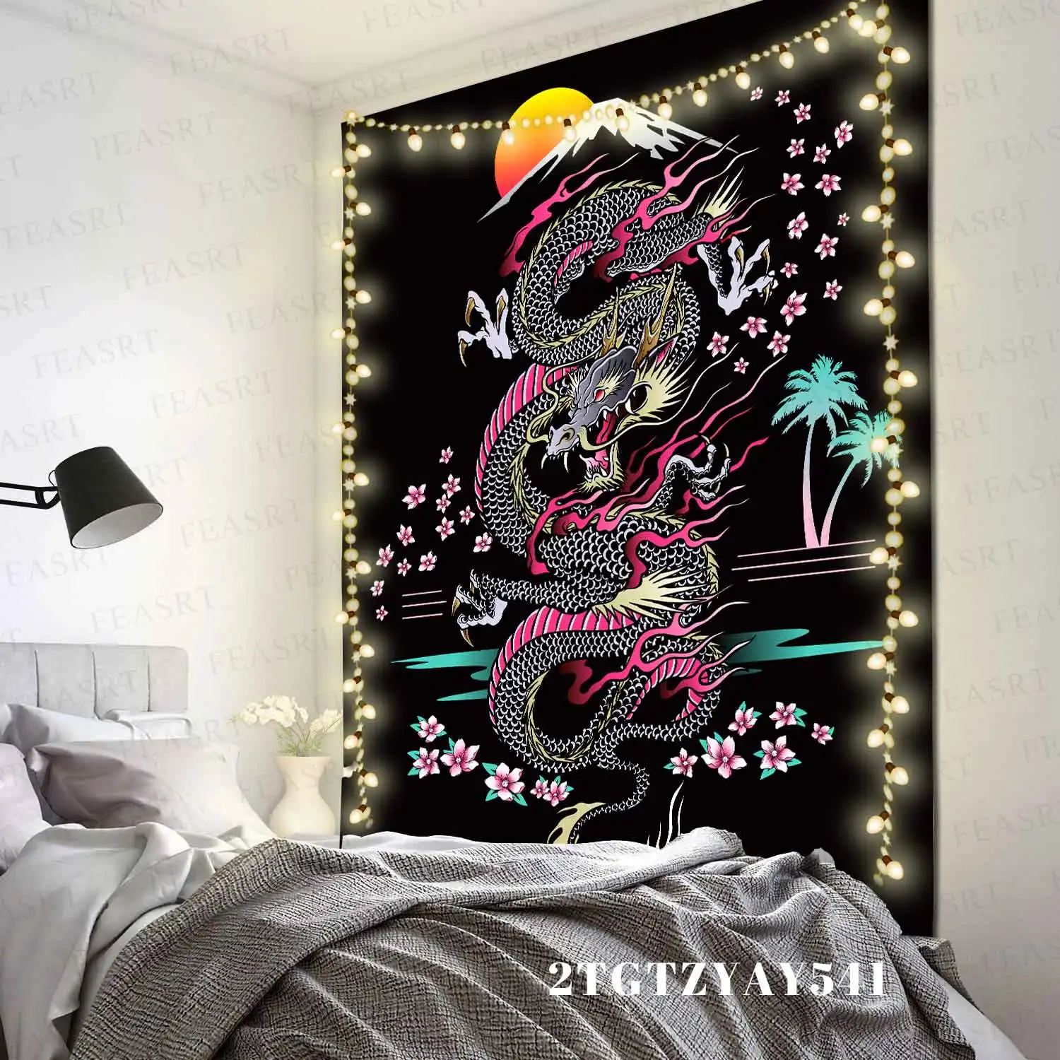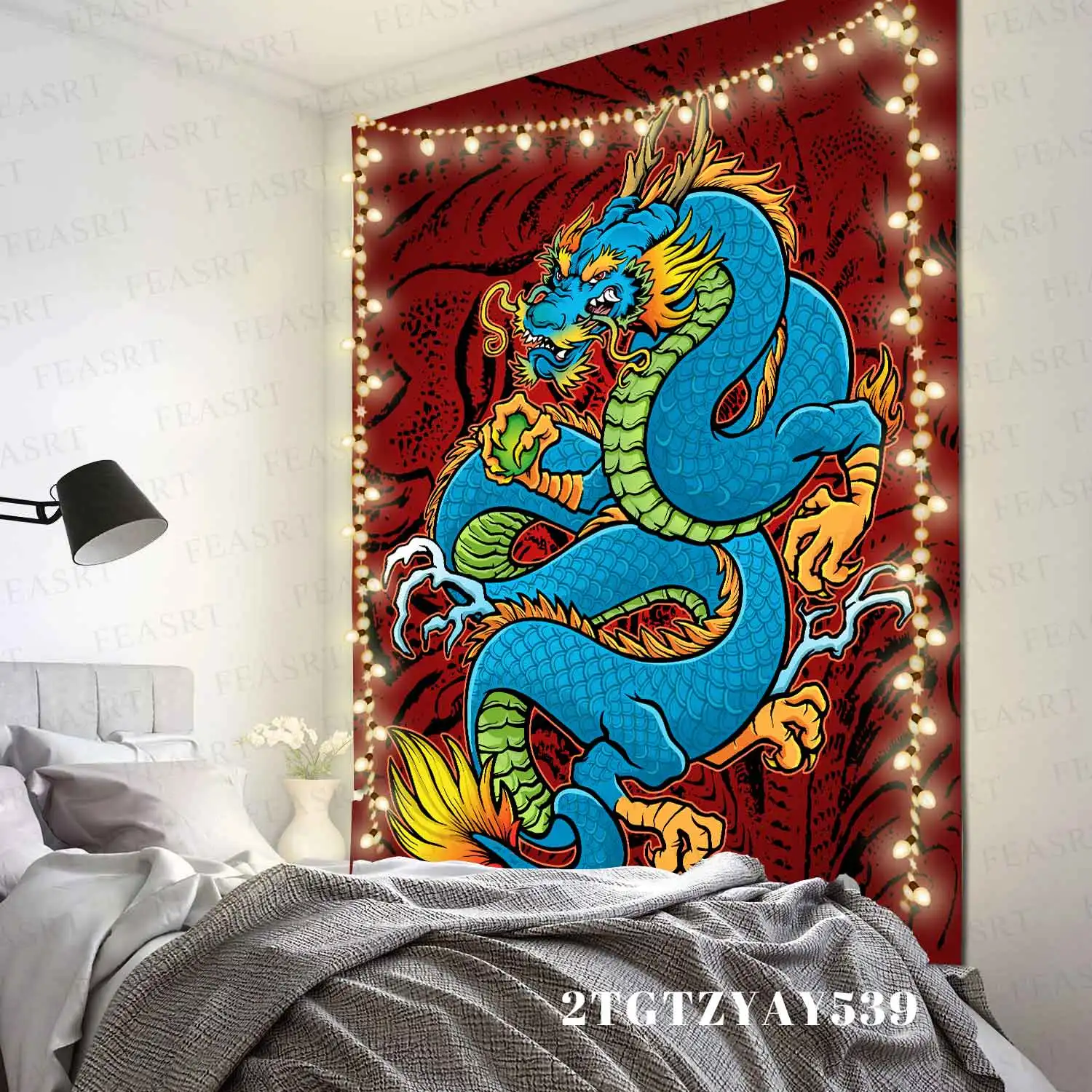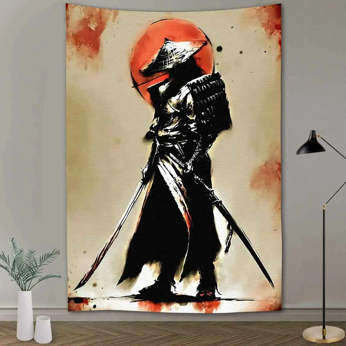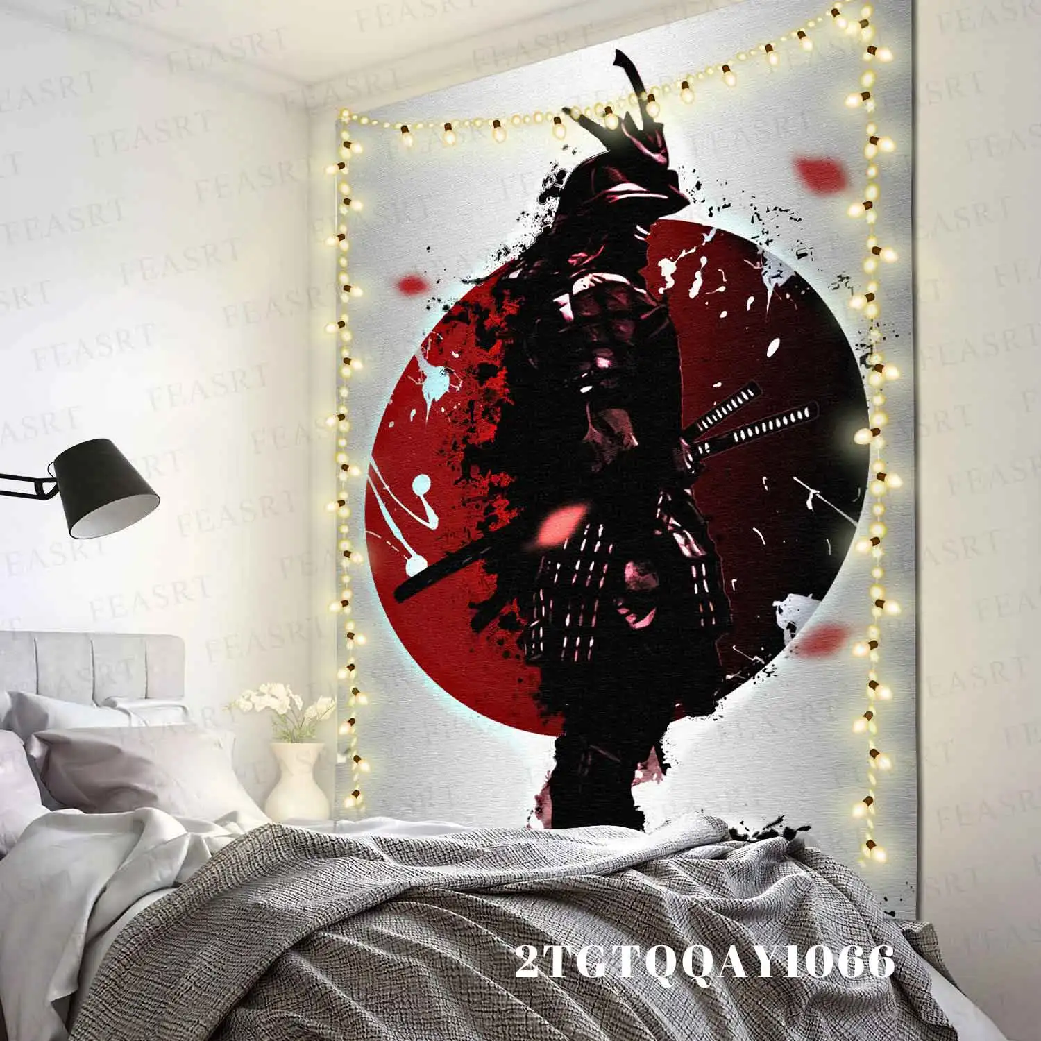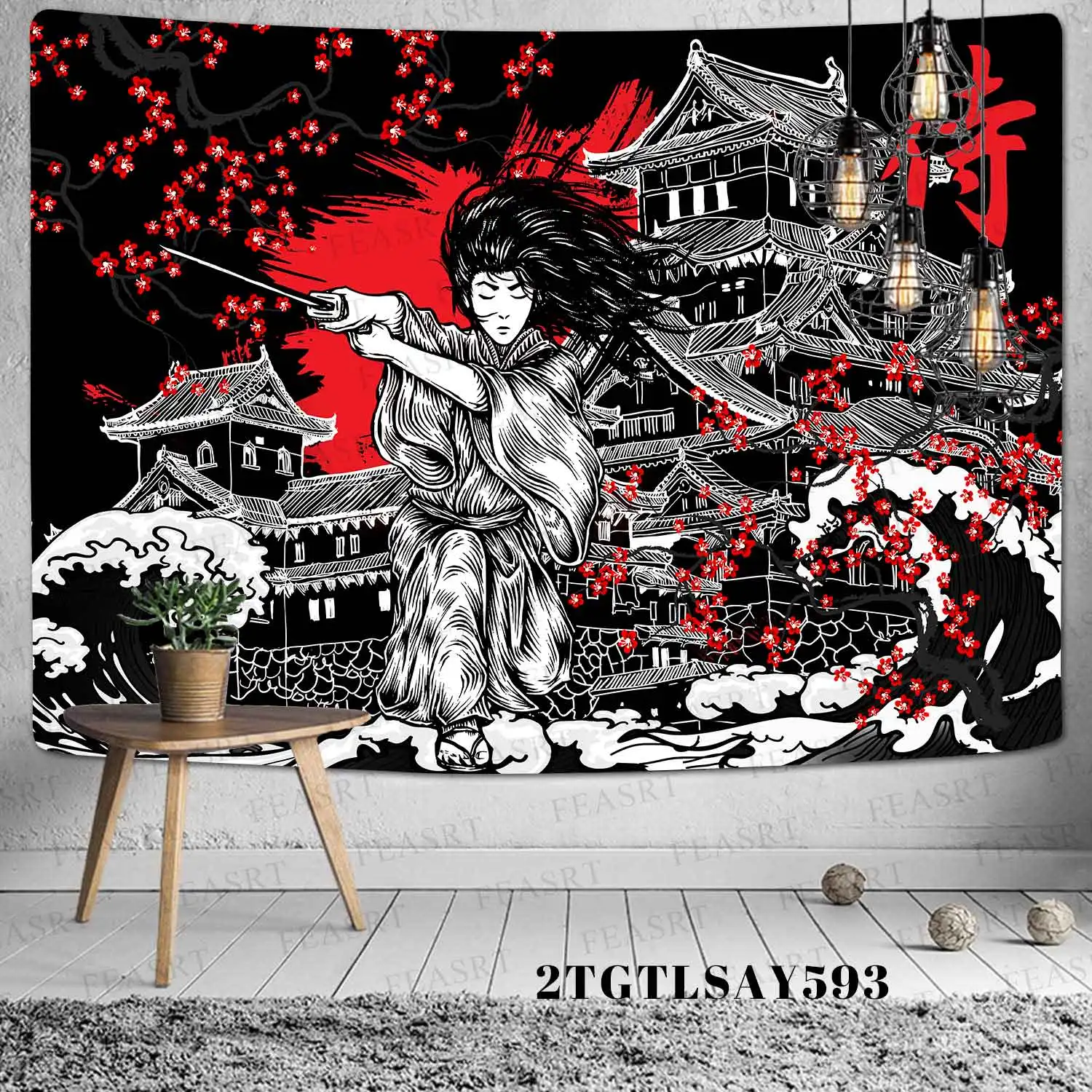 Готический гобелен в виде черепа, японский самурайский гобелен, психоделический гобелен для гостиной, спальни