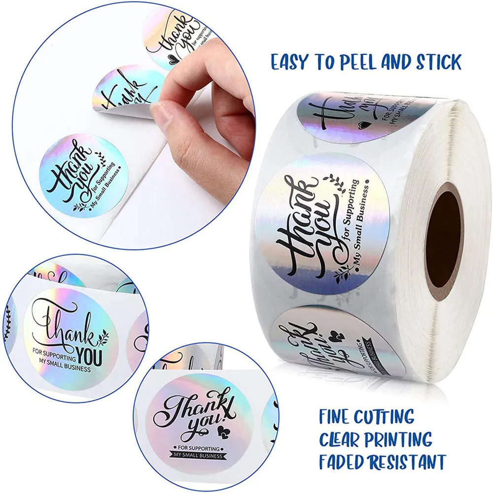 Спасибо наклейки 500 шт радужные, серебряные этикетки для печати вечерние праздничное украшение для подарка Love Happy Mail стикер для малого бизнеса