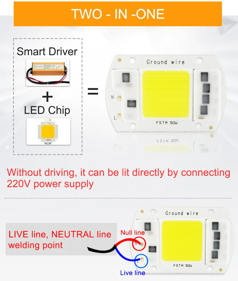 Светодиодный чип OK-B DIY COB 100 Вт, 50 Вт, 30 Вт, 20 Вт, В переменного тока, встроенный умный IC-драйвер, высокая яркость для прожектора, точечного светильника, теплого и белого цвета