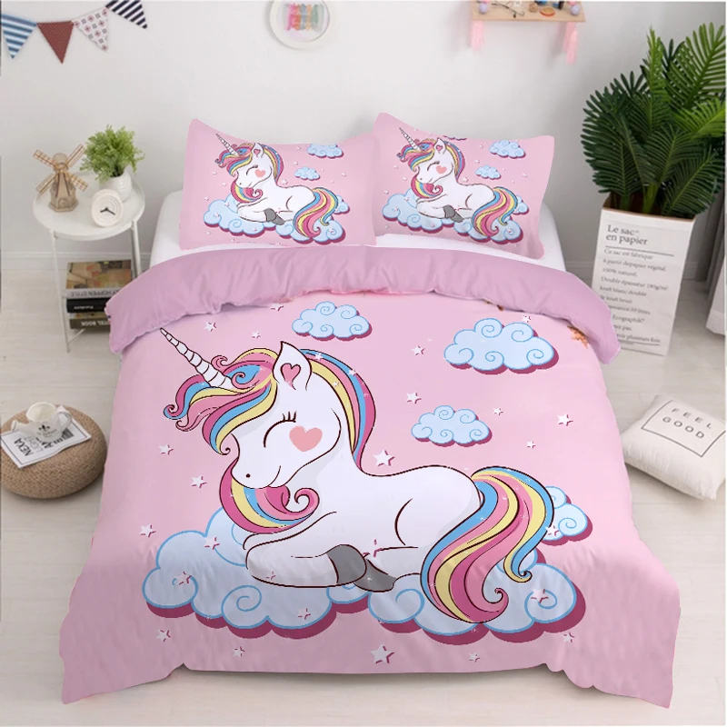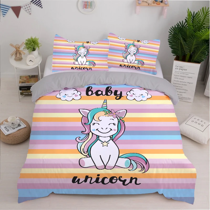 Детские наборы постельных принадлежностей подарки милый Единорог пододеяльник комплекты для детей Для мальчиков и девочек 23 предмета, Детское покрывало для детей ростом от 90 135 150 кровать