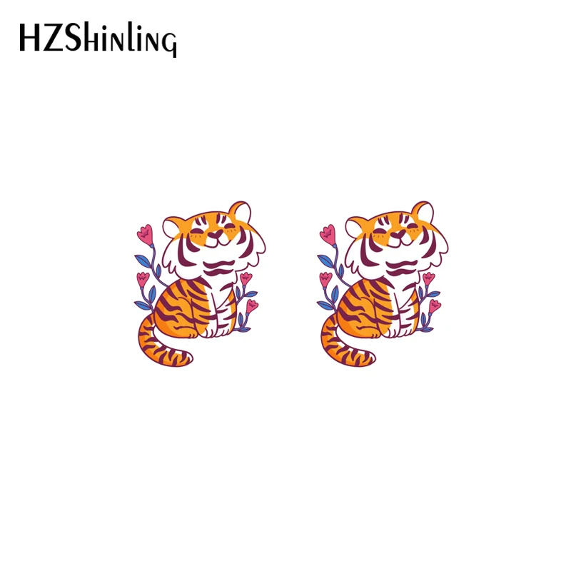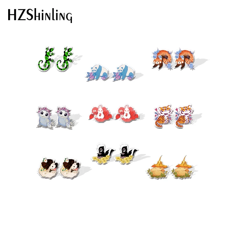 Новинка 2021, серьги-гвоздики в виде цветов, животных, тигра, панды, кролика, эпоксидная фотография