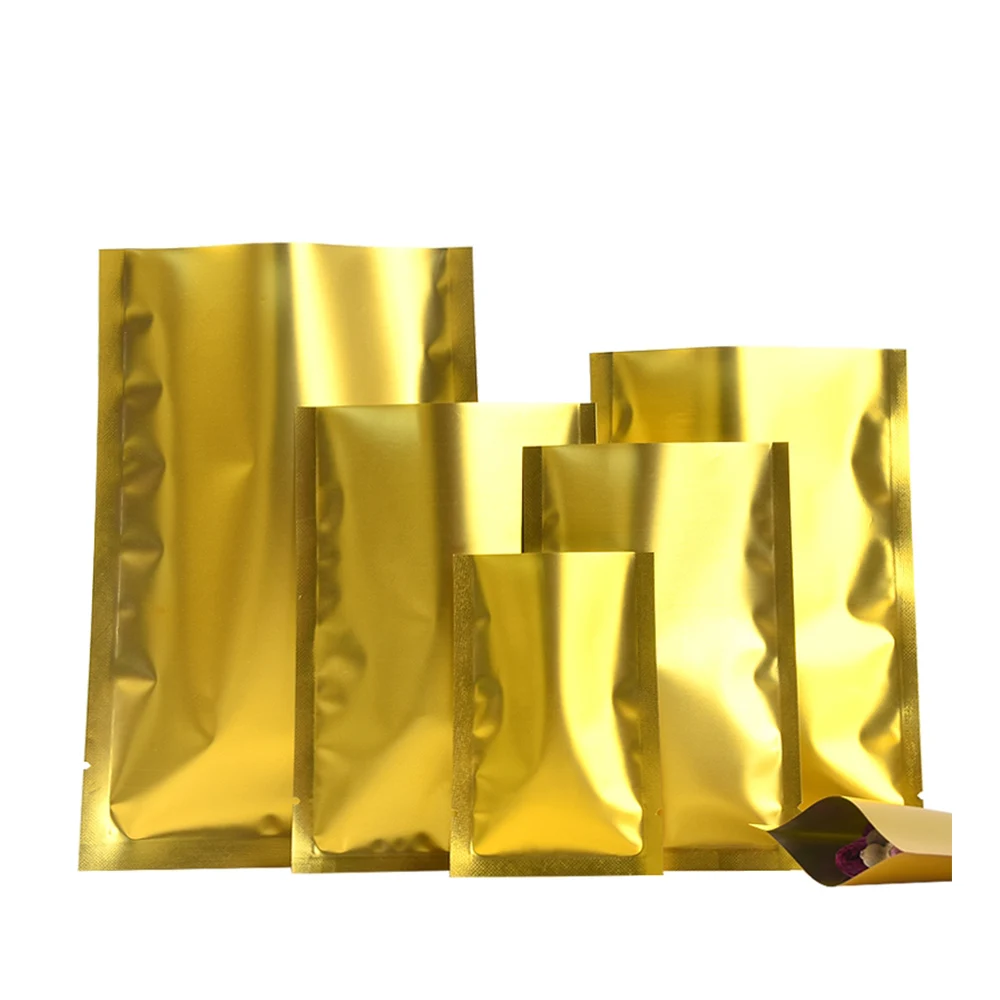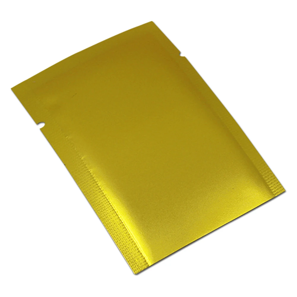 100 шт.лот, пакет из золотой алюминиевой фольги с открытым верхом, мешочки для хранения гаек и конфет, плоские карманы для образцов из майлара, вакуумные мешочки