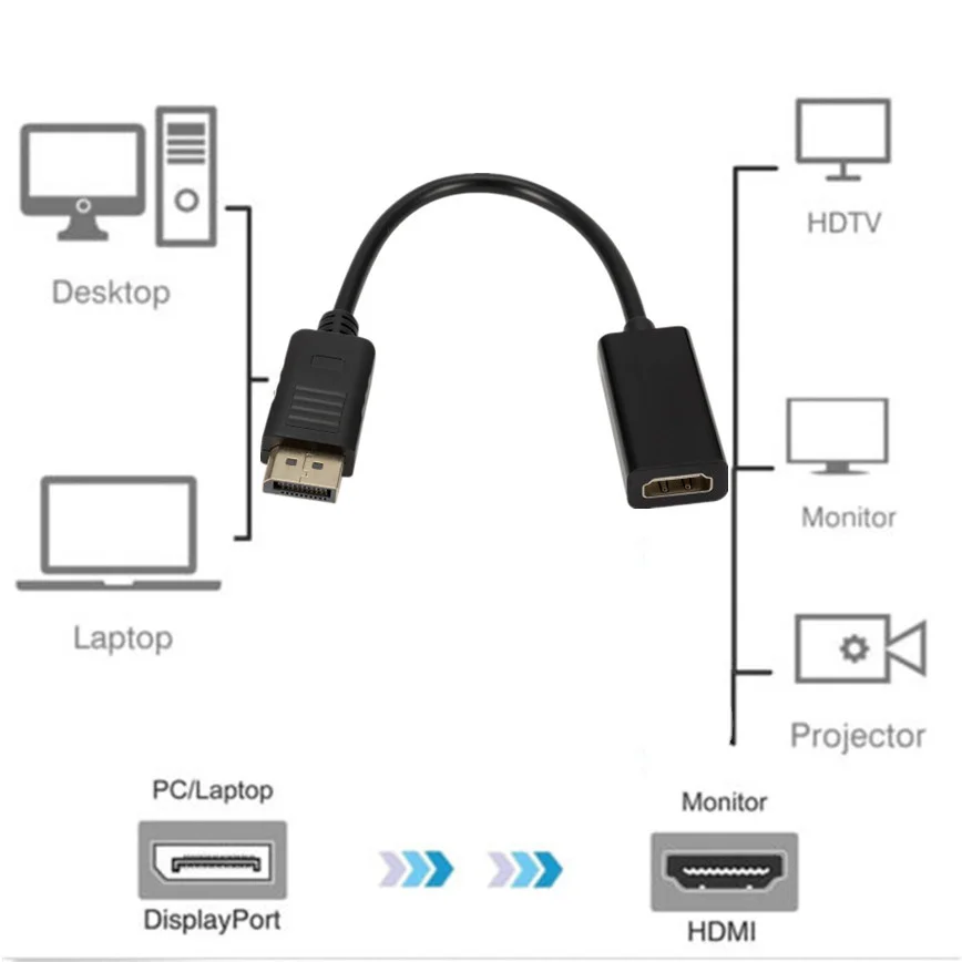 Переходник с DP на HDMI-совместимый кабель штырь-гнездо для ноутбука HPDELL, ПК, порт дисплея на 1080P HDMI-кабель com, конвертер адаптера
