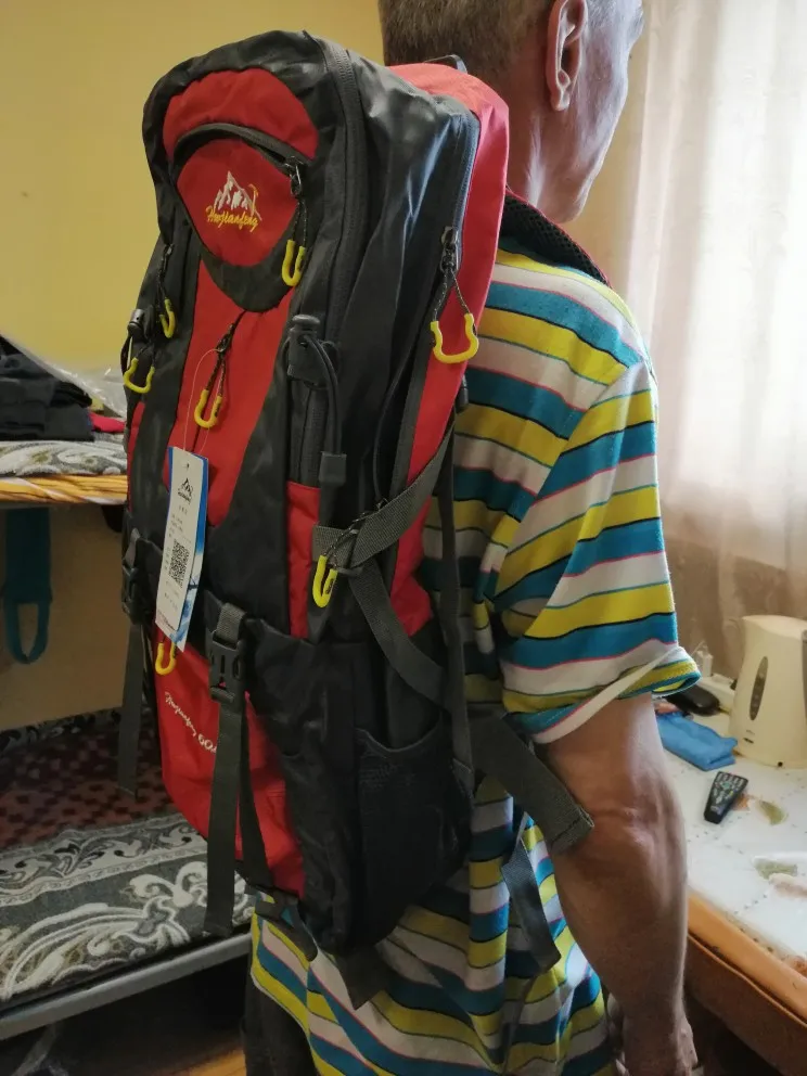 Обратите внимание - нет кармашков на поясном ремне! До этого был черно-красный ( видимо с другого магазина), но после 2х лет постоянной носки по шву оторвалась молния, рюкзак был удобным, для походов на легке, поэтому заказала, как думалось, такой-же. Качество хорошее. Пришло на 60л (учит не брать лишнее)