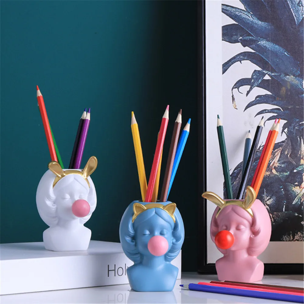 Kawaii пузырьковый держатель для ручки для девочек, скандинавский горшок для суккулентов, держатель для кистей для макияжа, настольное украшение, милые канцелярские товары, украшение для дома