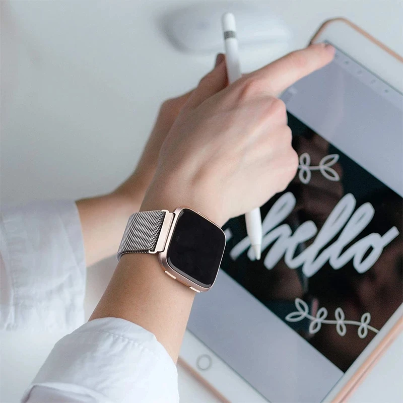 Магнитный браслет с Миланской петлей, браслет из нержавеющей стали с регулируемой застежкой, ремешок для часов Fitbit Versa 2 Lite